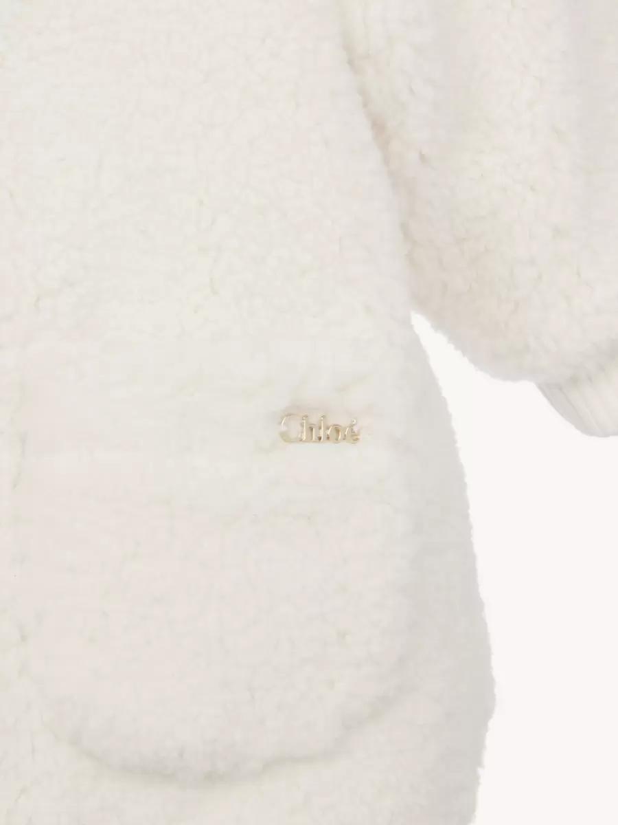 Realizzato in pile di shearling, questo caldo cappotto presenta un colletto in similpelle e bottoni automatici dorati con incisione Chloé. Due tasche applicate, finiture a coste e una targhetta con logo Chloé dorato completano il capo.