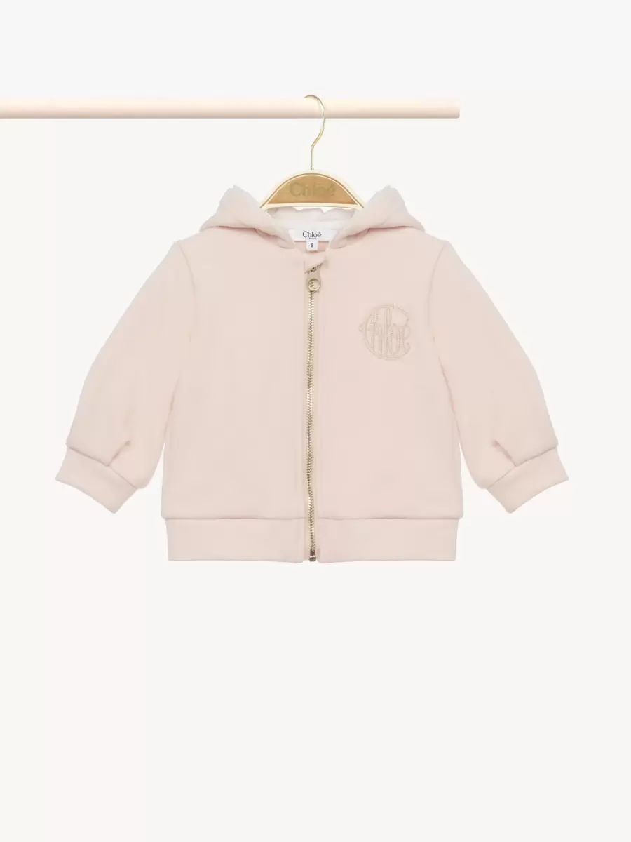 Realizzata in pile di cotone biologico, questa felpa con cappuccio e zip combina il ricamo del logo Chloé color oro sul petto con un bordo smerlato a contrasto lungo il cappuccio e le tasche laterali. I dettagli metallici color oro aggiungono una finitura elegante.