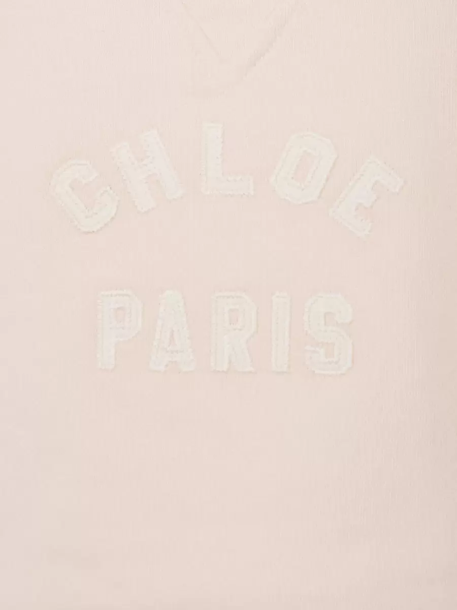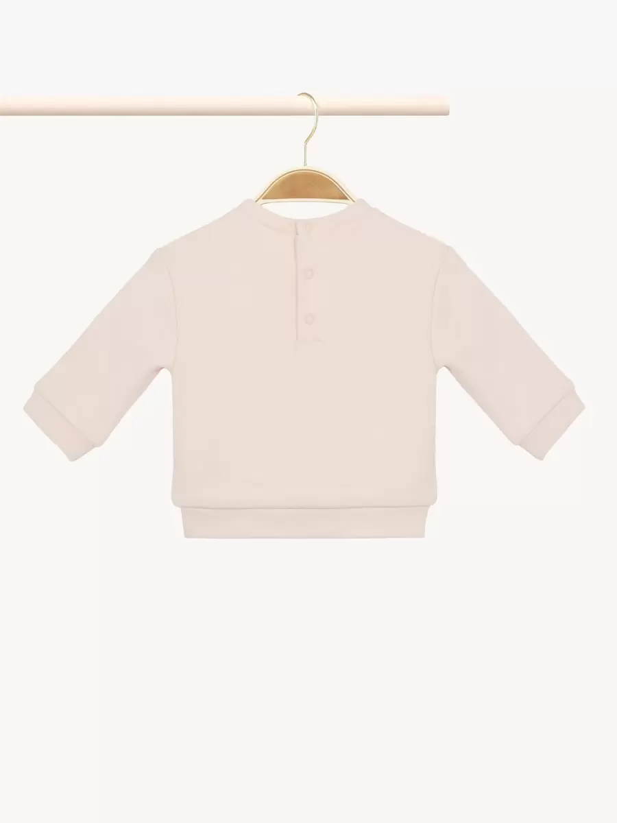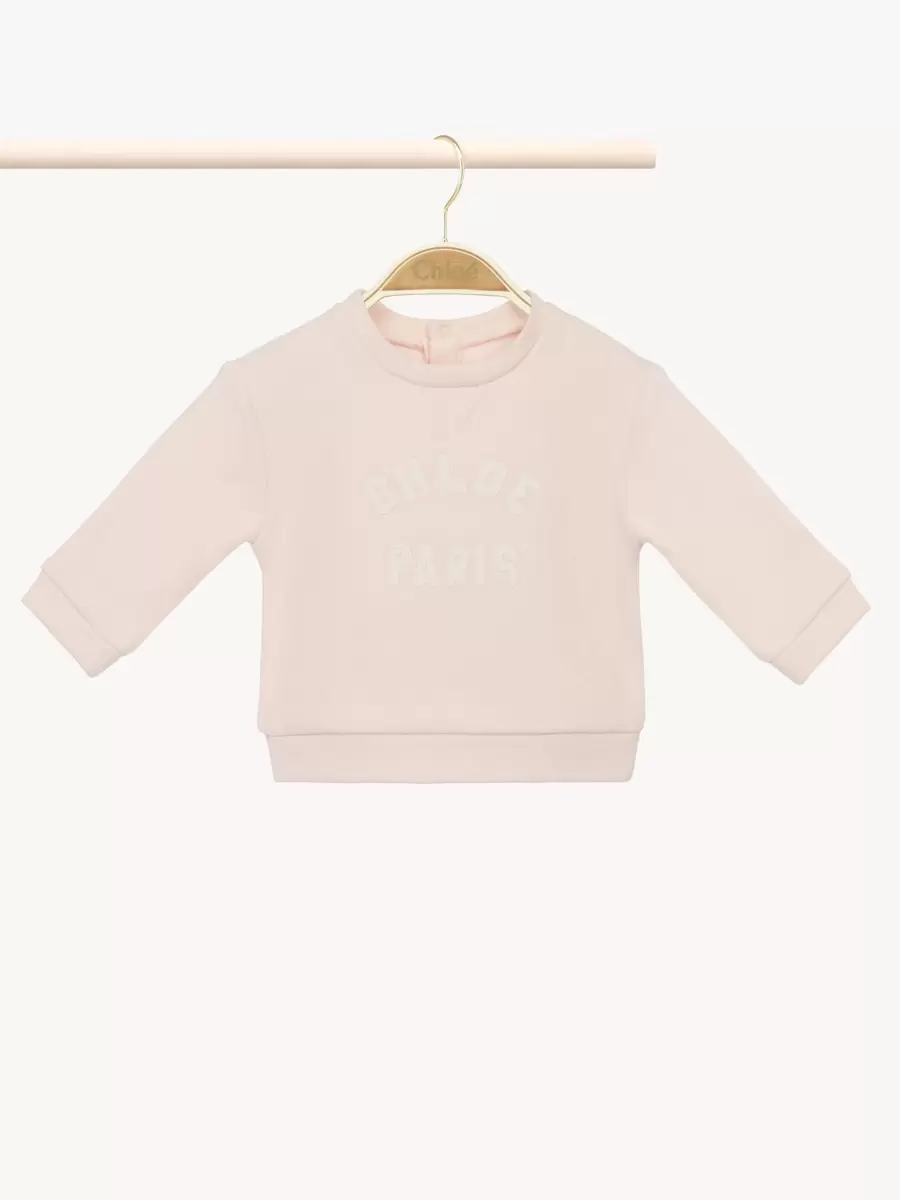 Questo maglione in cotone biologico esalta la morbidezza e il comfort del pile con ricamo Chloé Paris a contrasto sul petto. Tre bottoni automatici sul retro del collo rendono il maglione facile da indossare e togliere.