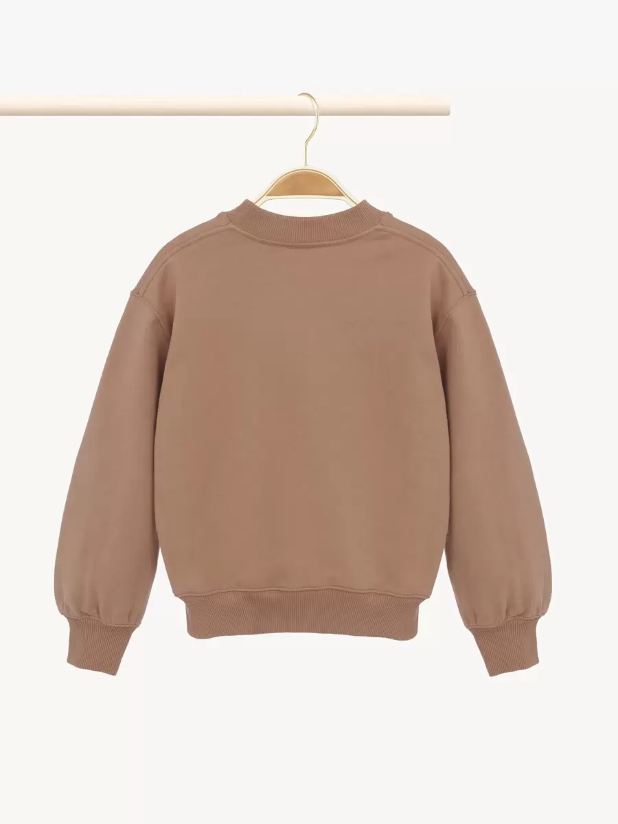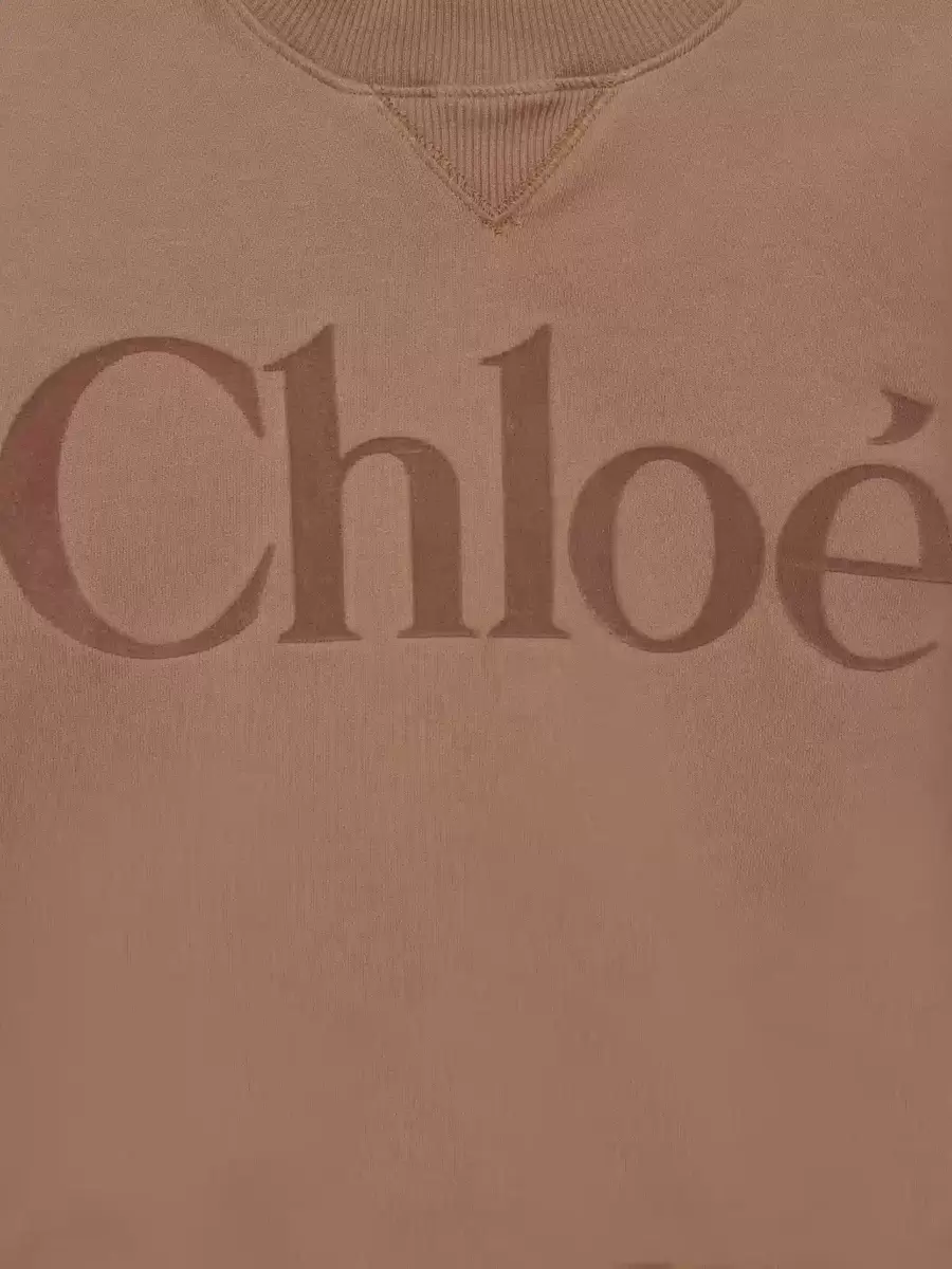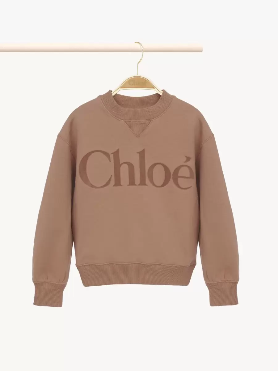 Questo maglione in cotone biologico esalta il comfort del pile con il ricamo del logo Chloé effetto velluto sul petto. I bordi a coste completano la silhouette casual a girocollo.