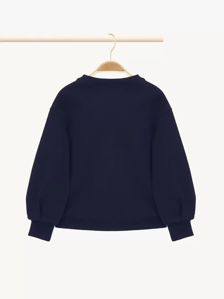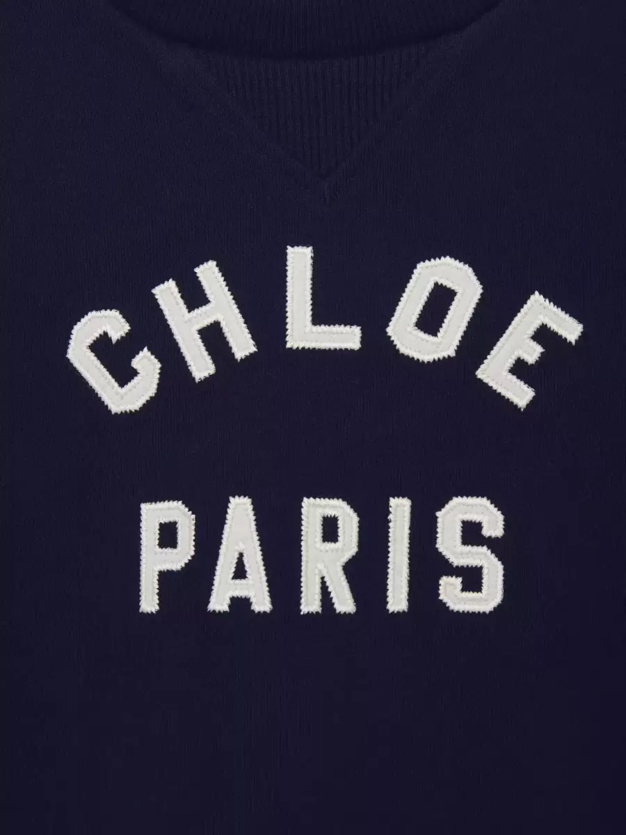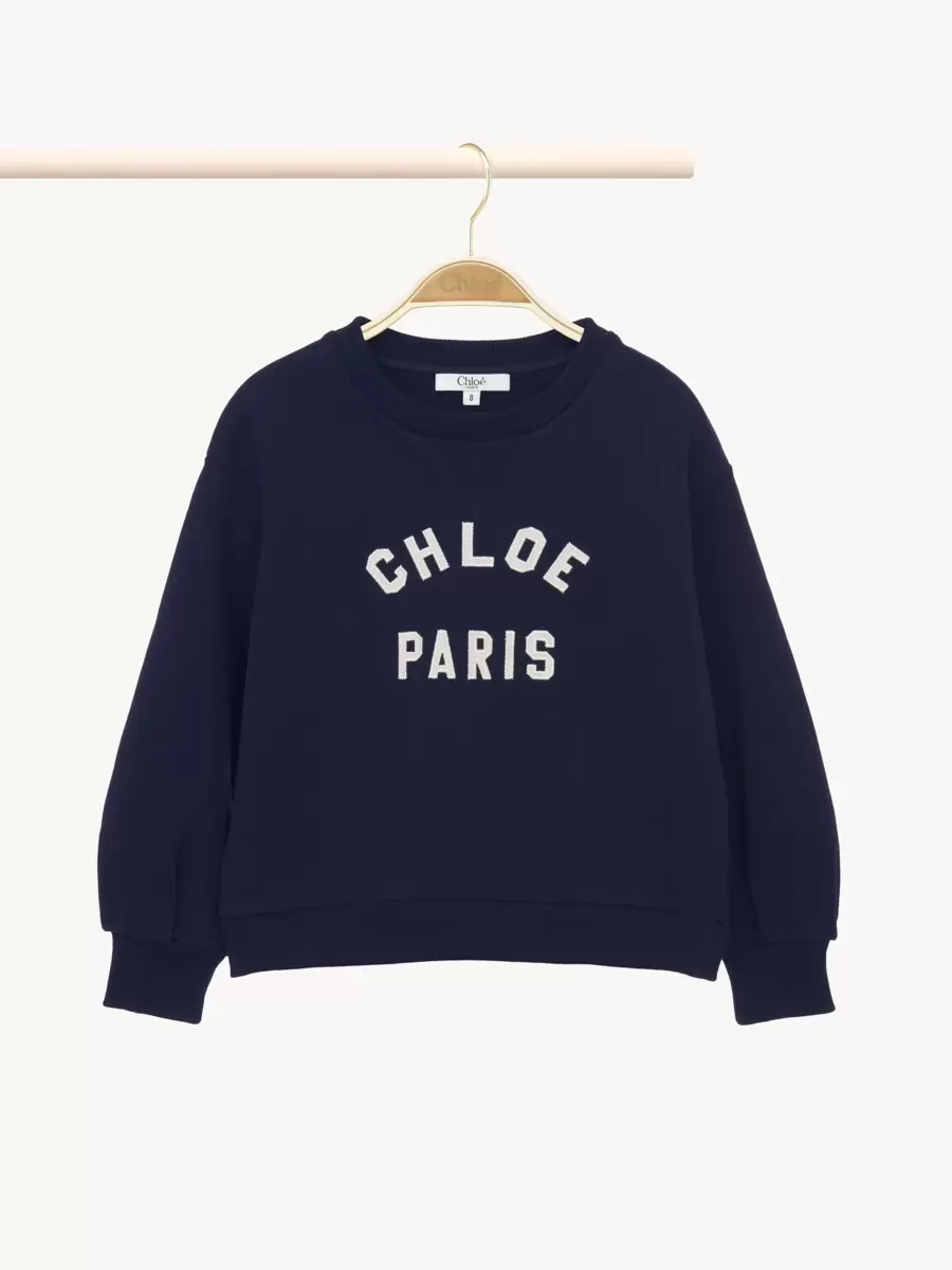 Questo maglione in cotone biologico esalta la morbidezza e il comfort del pile con ricamo Chloé Paris a contrasto sul petto. Tasche laterali e bordi a coste completano la silhouette casual con scollo rotondo.