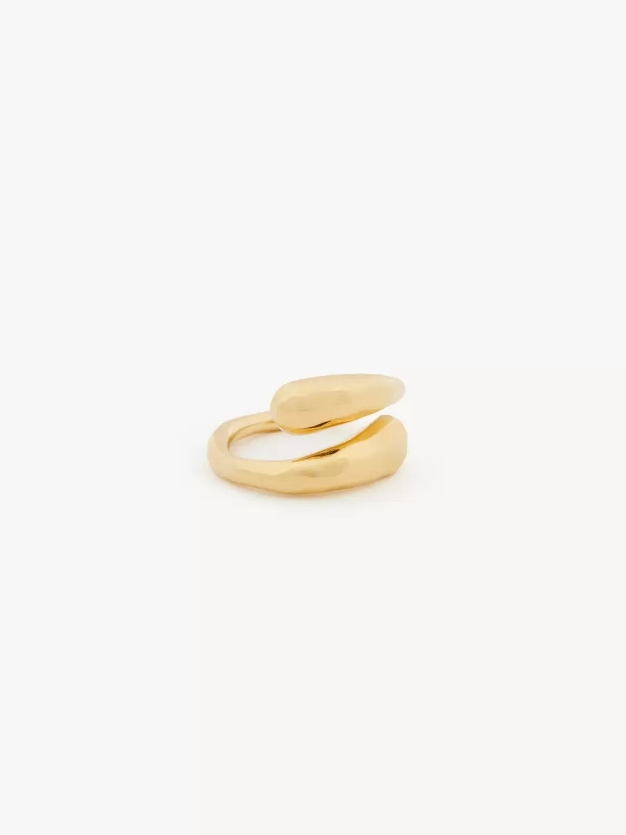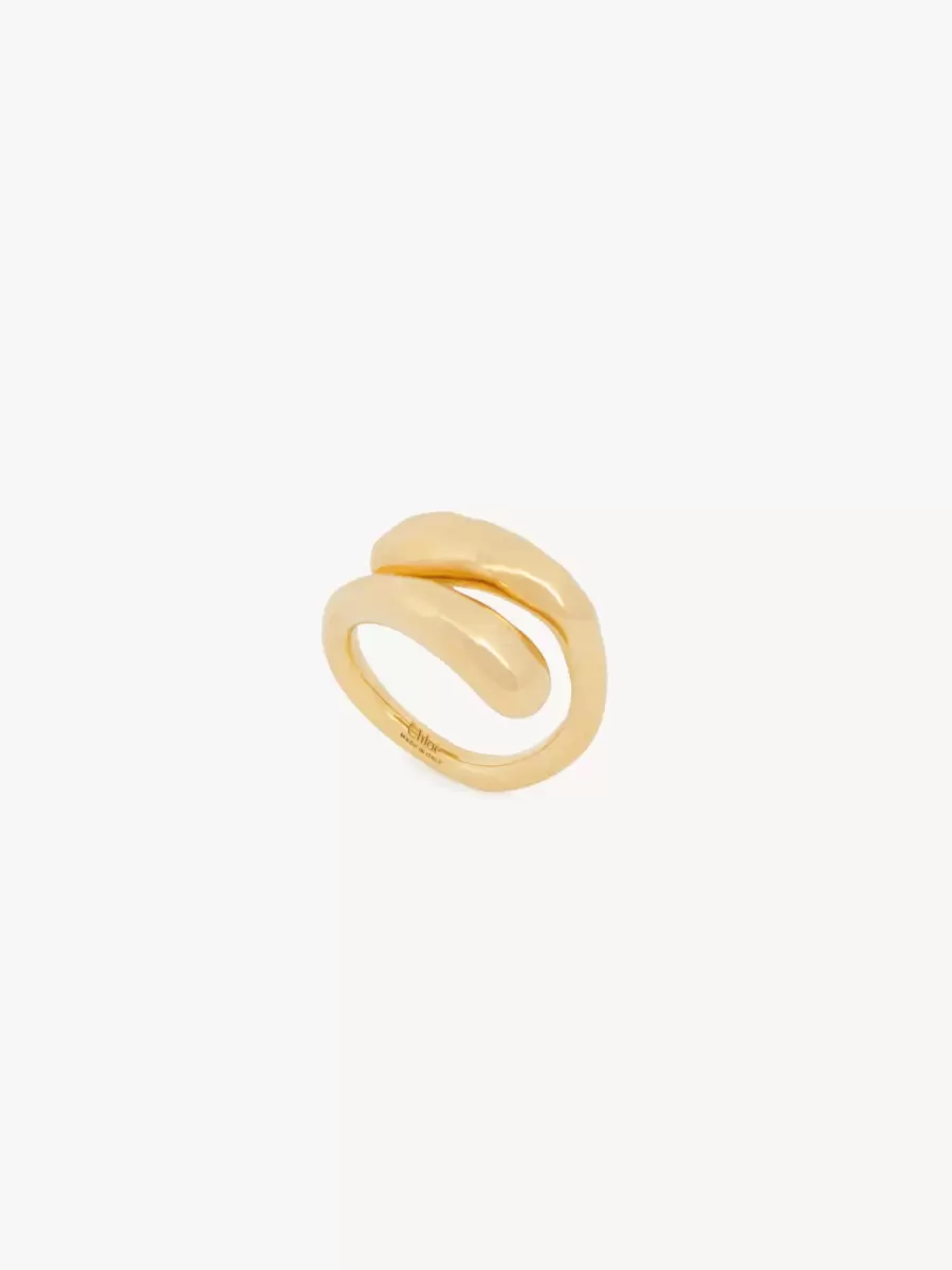 Anello avvolgente Chloé Curl Toi et Moi in ottone dorato vintage, caratterizzato da texture lisce e martellate per un effetto artigianale. L’incisione del logo Chloé firma questo pezzo.