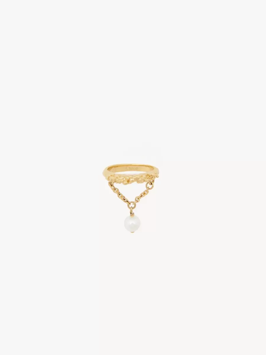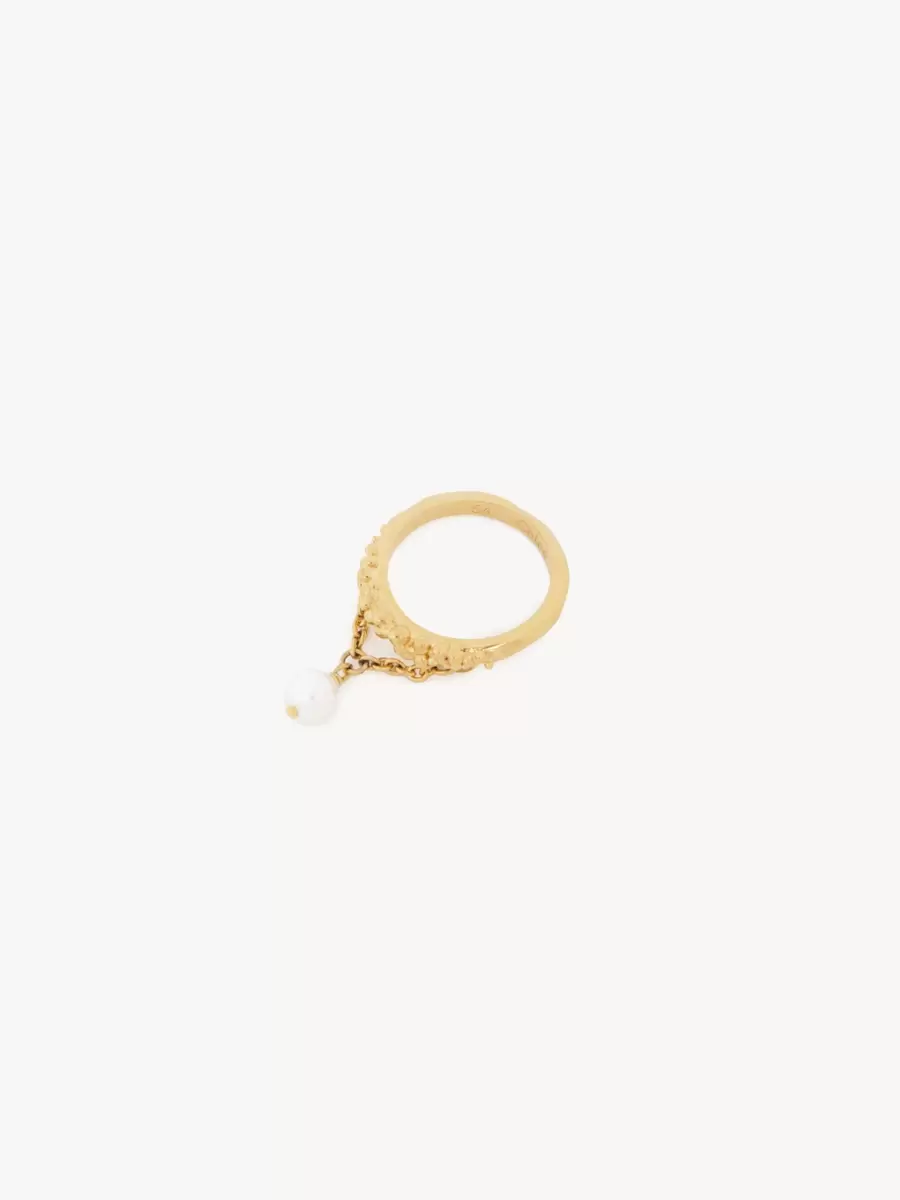 Anello Chloé Shells in ottone dorato vintage. Impreziosito da dettagli effetto caviale, il bracciale presenta una perla sintetica pendente su una catenina. L’incisione del logo Chloé completa l’anello.