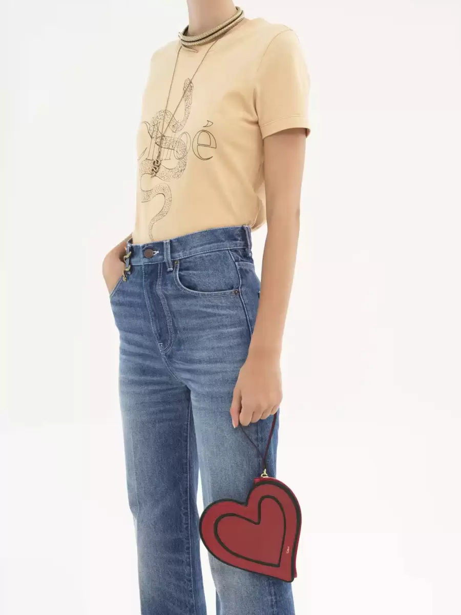 Realizzata in pelle di vitello martellata lucida, questa pochette piatta Chloé Symbols Heart esprime la visione del cuore di Chloé secondo la direttrice creativa Chemena Kamali. Progettata per contenere l’essenziale, questa divertente borsa è dotata di un cinturino per portarla a mano e al polso.