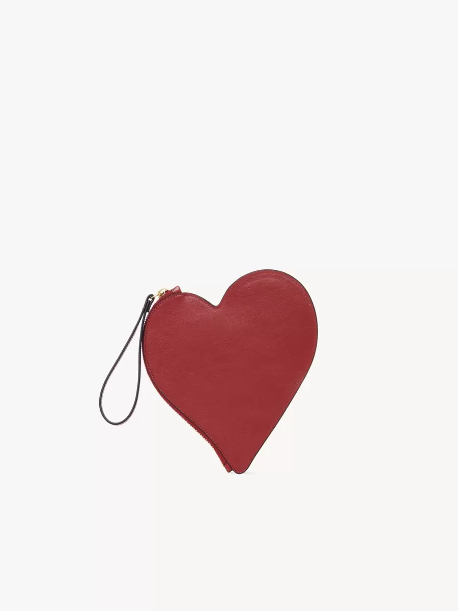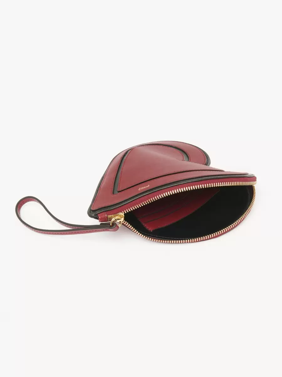 Pochette piatta a cuore in pelle di vitello martellata lucida