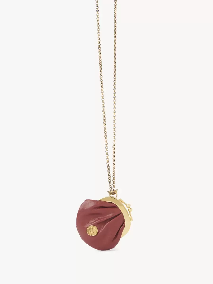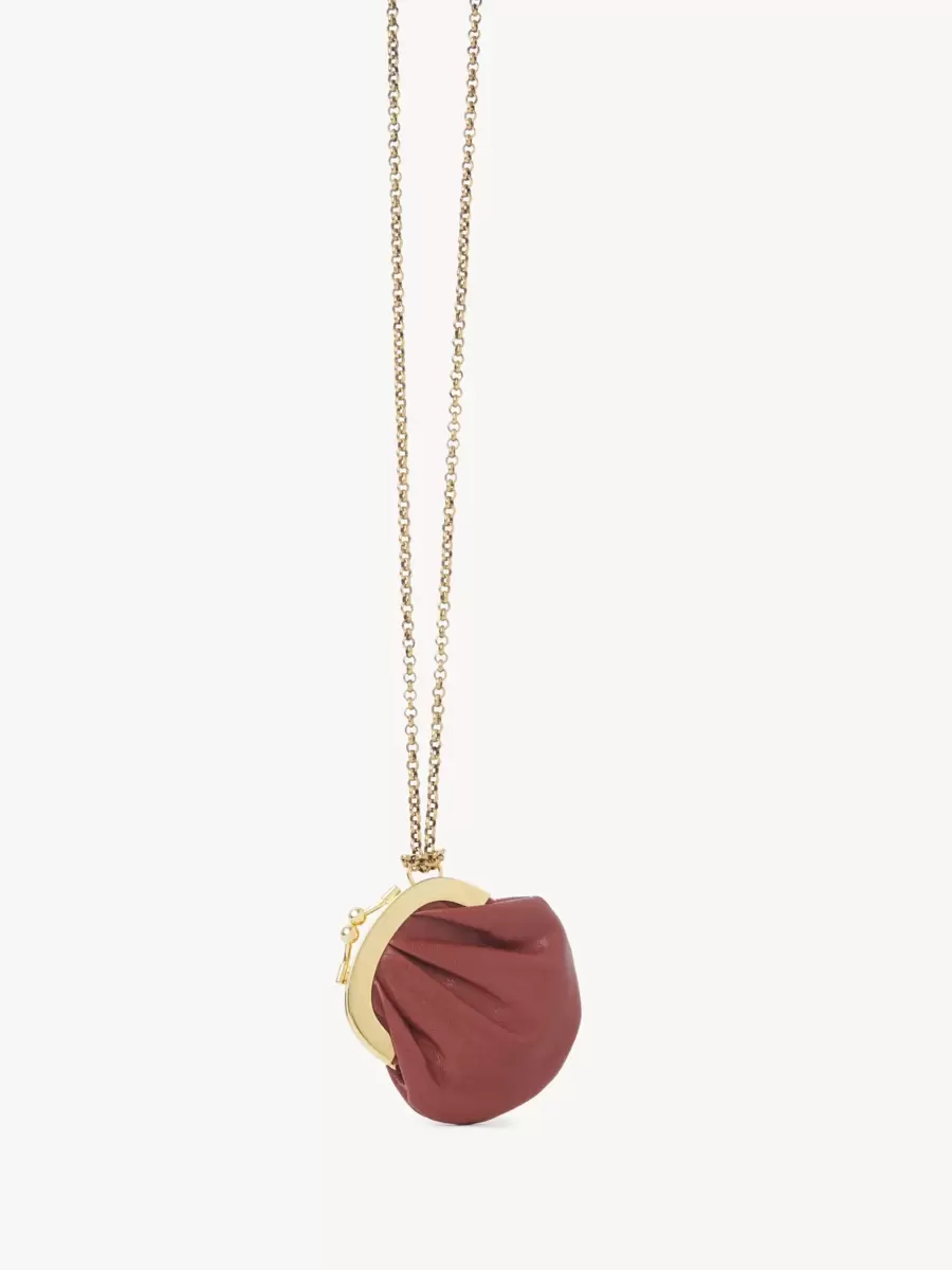 Portamonete con collana Micro Horse Medal in pelle di bufalo granata