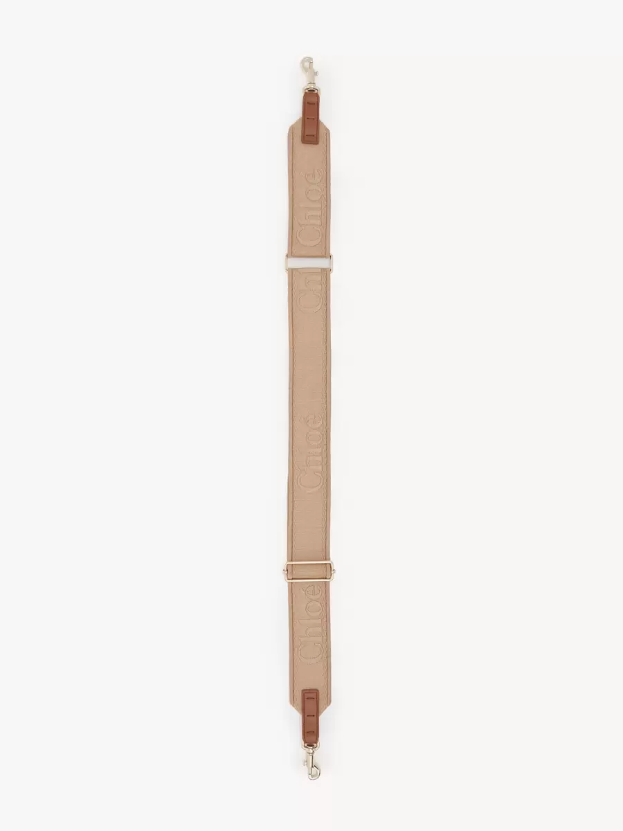 Realizzata in tela, questa tracolla regolabile ridisegna l’accessorio simbolo della Maison in una versione con lunghezza regolabile. Presenta il logo Chloé ricamato e un gancio metallico a ciascuna estremità, che si aggancia alle borse e alle mini bag della Maison per indossarle a spalla o a tracolla.