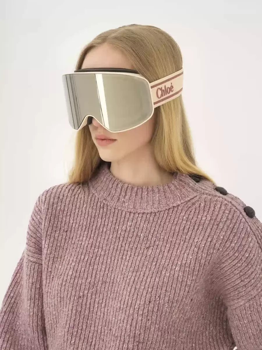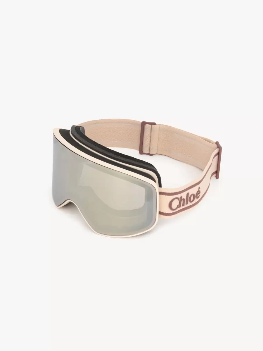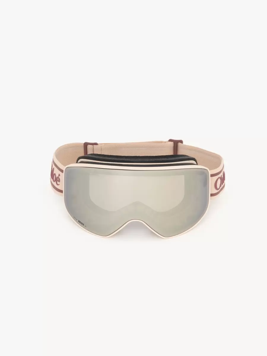 Questi occhiali da sci Chloé Cassidy sono dotati di lenti tecniche ZEISS, con trattamento a specchio argentato ideale per tutte le condizioni. Il cinturino regolabile color carne è firmato con il logo Chloé su entrambi i lati.