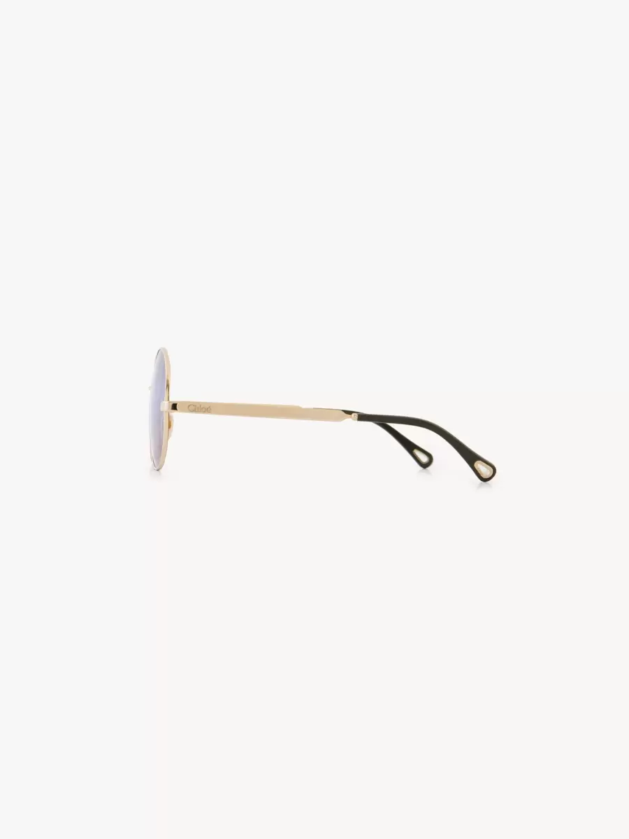 Questi occhiali da sole rotondi Aly abbinano una montatura grafica leggera in metallo dorato lucido a lenti triple sfumate in una palette di verde, blu e ruggine. Il logo Chloé rifinisce la lente sinistra.