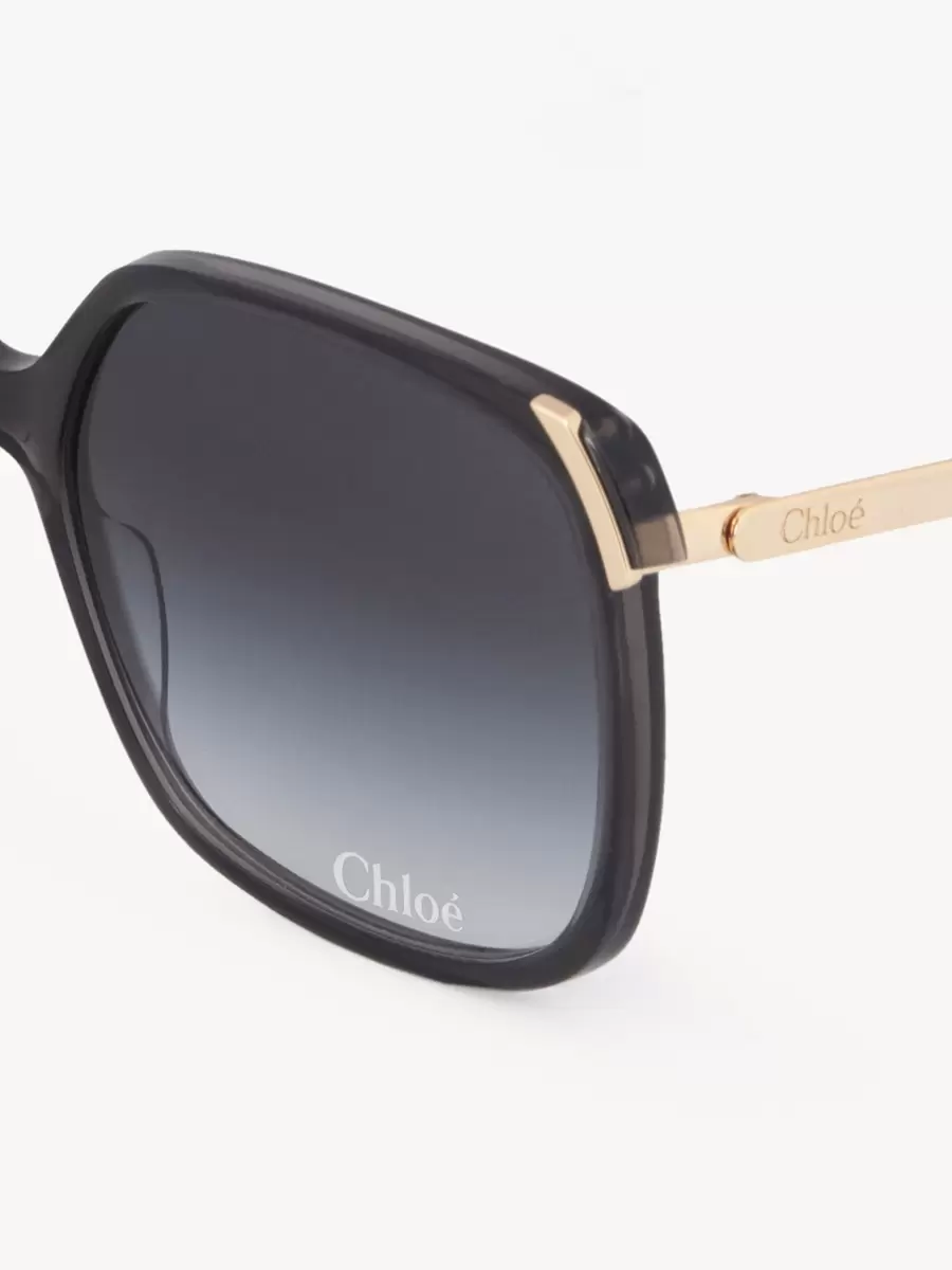 Questi occhiali da sole quadrati Aly hanno una montatura in stile anni ’70 in un mix di acetato grigio scuro a basso impatto e metallo dorato lucido. Le lenti blu sfumate sono firmate con il logo Chloé.