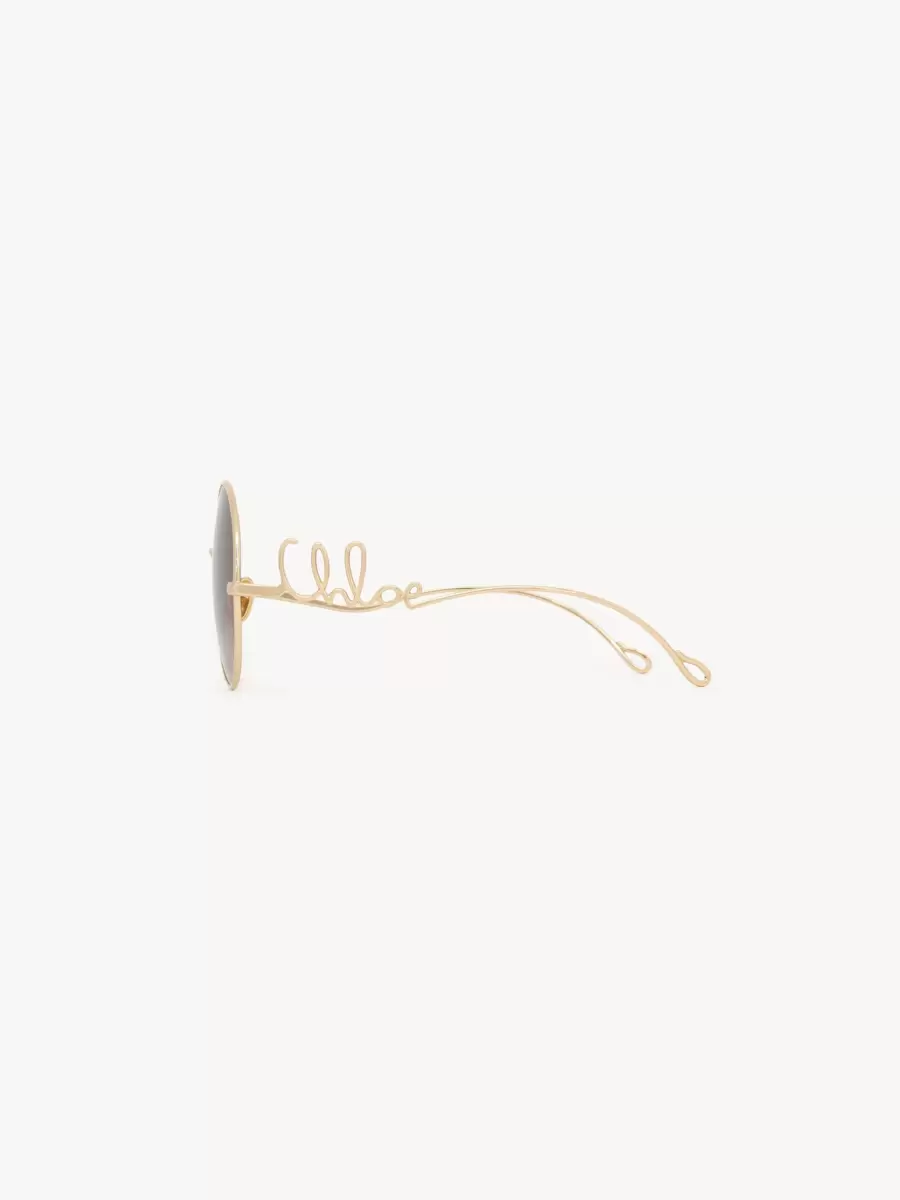 Occhiali da sole rotondi in metallo dorato e nylon di origine biologica