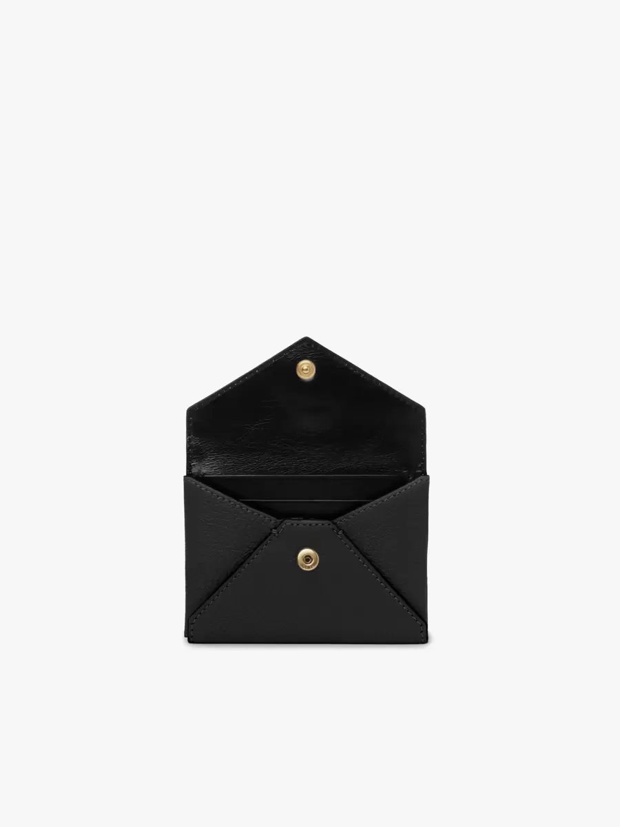 Realizzato in pelle di capra granata, questo porta carte Envelope unisce un design sottile e allungato a una pratica chiusura con bottone automatico.