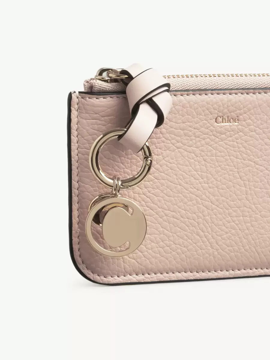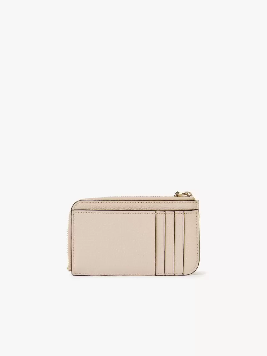 La pelle di vitello granata offre una texture elegante, mentre un passante in metallo dorato attaccato alla maglia in pelle annodata crea un tocco di stile. Aggiungi il tuo ciondolo iniziale a questo piccolo portafoglio portamonete per un dettaglio decorativo e personalizzato.