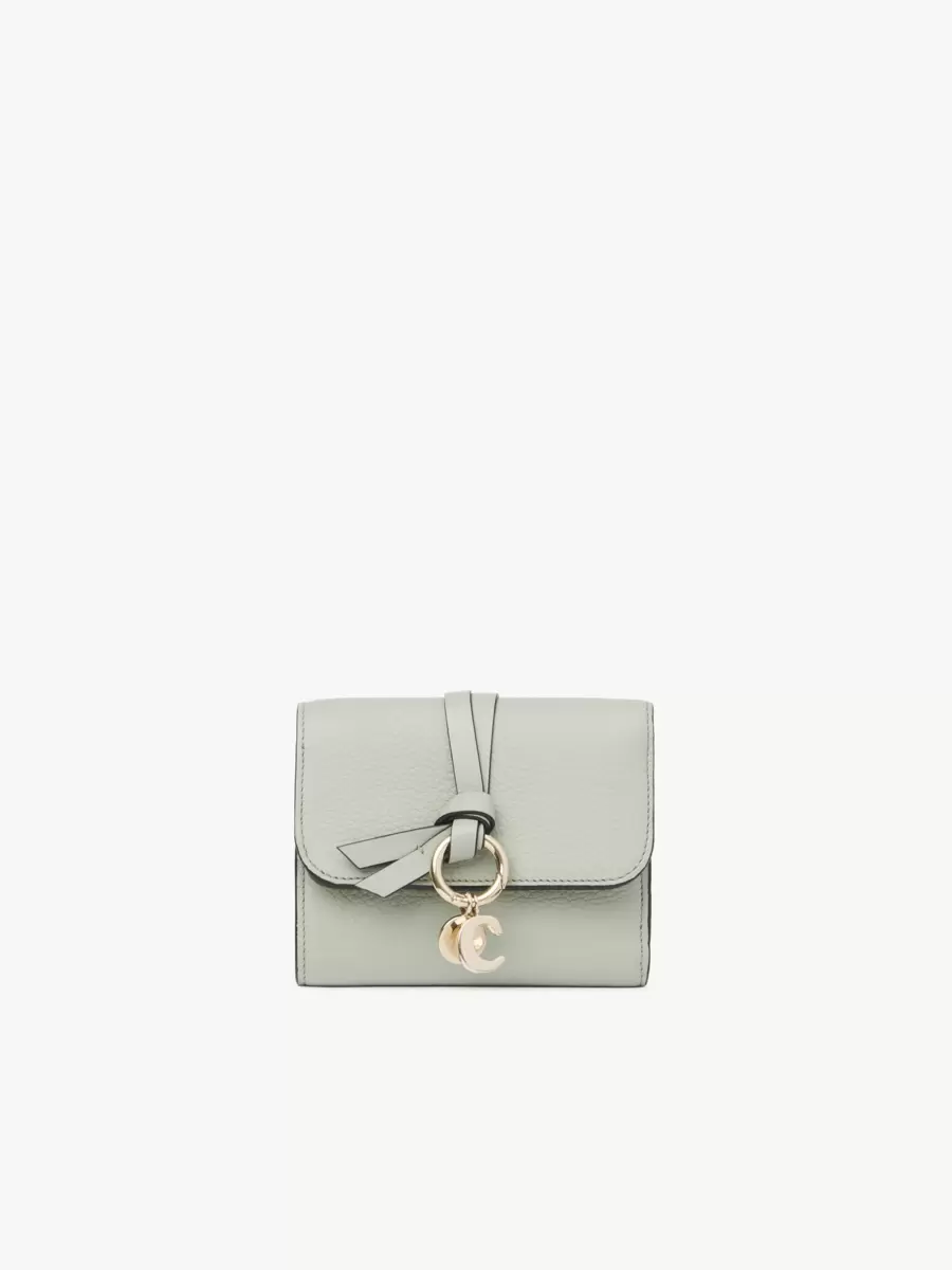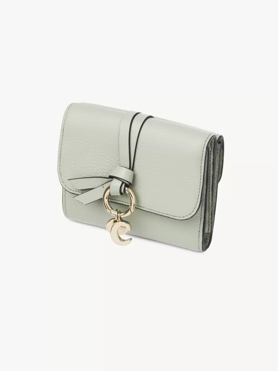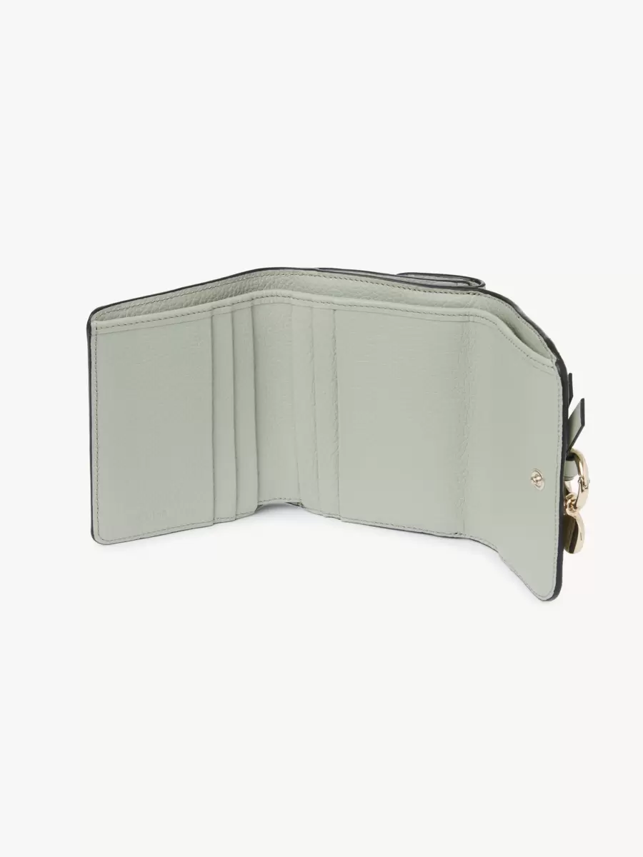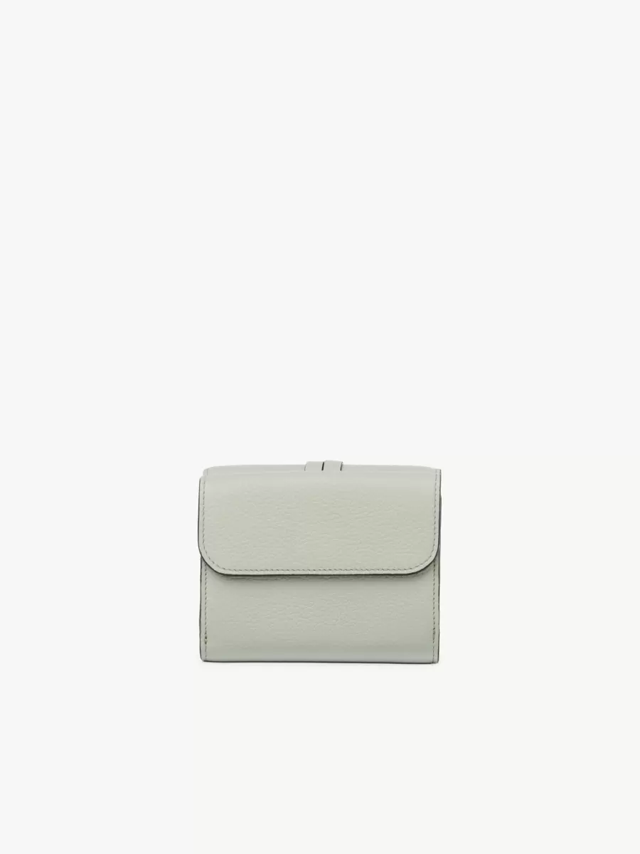 L’iconica linea Alphabet della Maison include questo portafoglio a tre ante in pelle di vitello martellata e lucida. Progettato per contenere l’essenziale, presenta diversi scomparti per carte e una tasca piatta. La parte anteriore è rifinita con un anello annodato e ciondoli con iniziali dorate firmati Chloé.