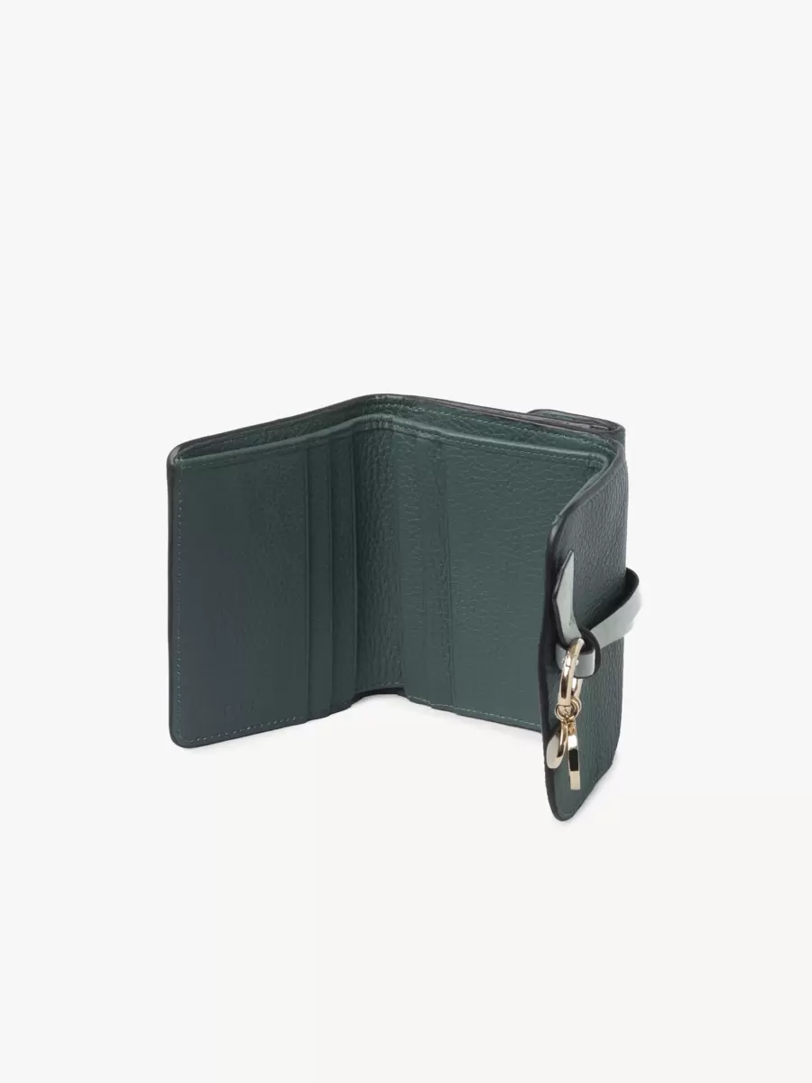 L’iconica linea Alphabet della Maison include questo portafoglio a tre ante in pelle di vitello bicolore granata e lucida. Progettato per contenere l’essenziale, presenta diversi scomparti per carte e una tasca piatta. La parte anteriore è rifinita con un anello annodato e ciondoli con iniziali dorate firmati Chloé.