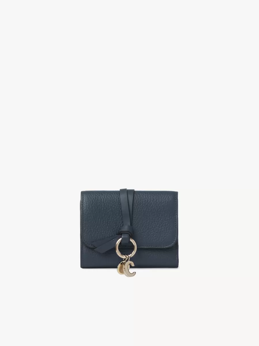 L’iconica linea Alphabet della Maison include questo portafoglio a tre ante in pelle di vitello martellata e lucida. Progettato per contenere l’essenziale, presenta diversi scomparti per carte e una tasca piatta. La parte anteriore è rifinita con un anello annodato e ciondoli con iniziali dorate firmati Chloé.