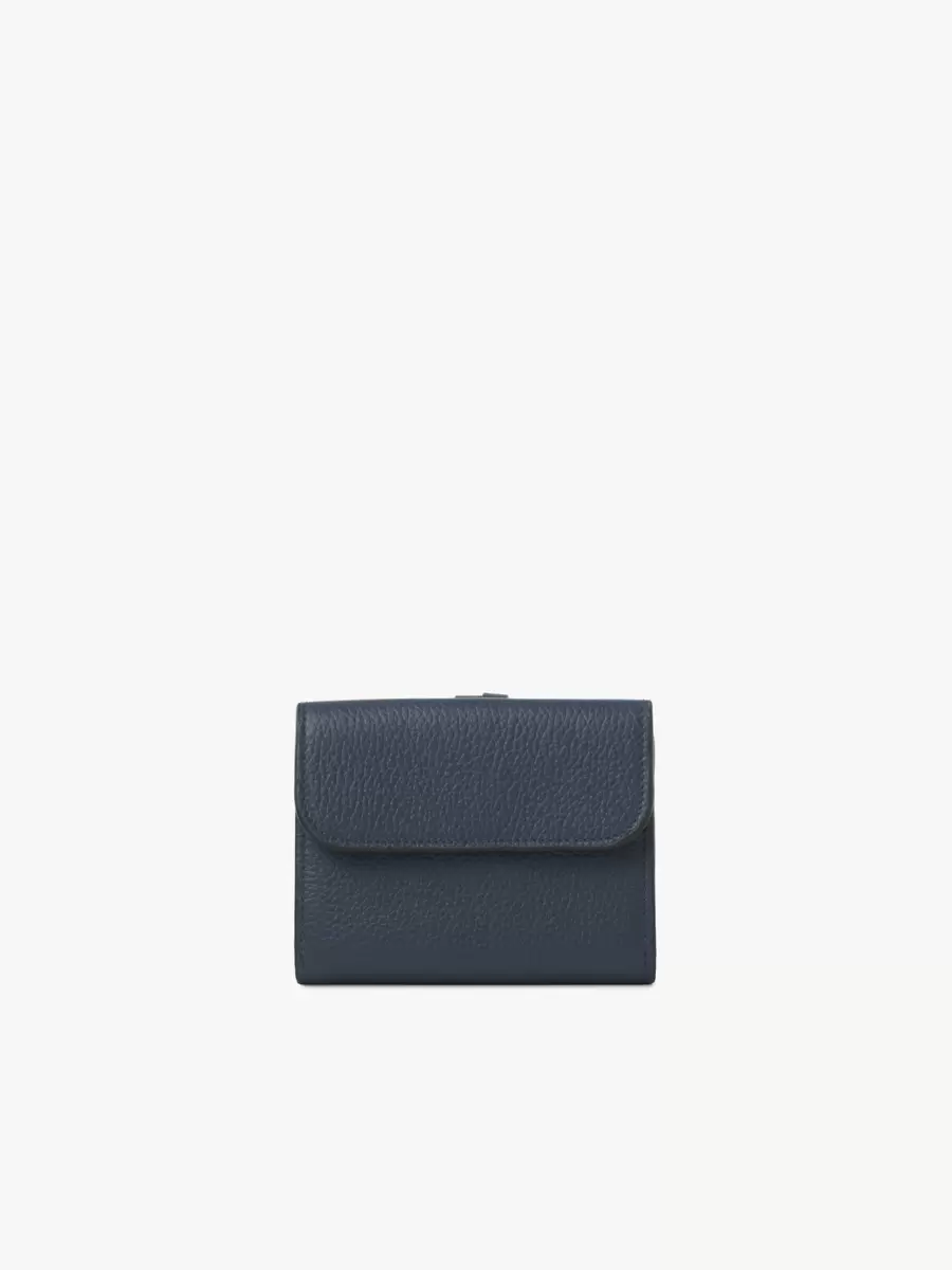 Piccolo portafoglio a tre ante con anello in pelle martellata e lucida Pelle di vitello lucida