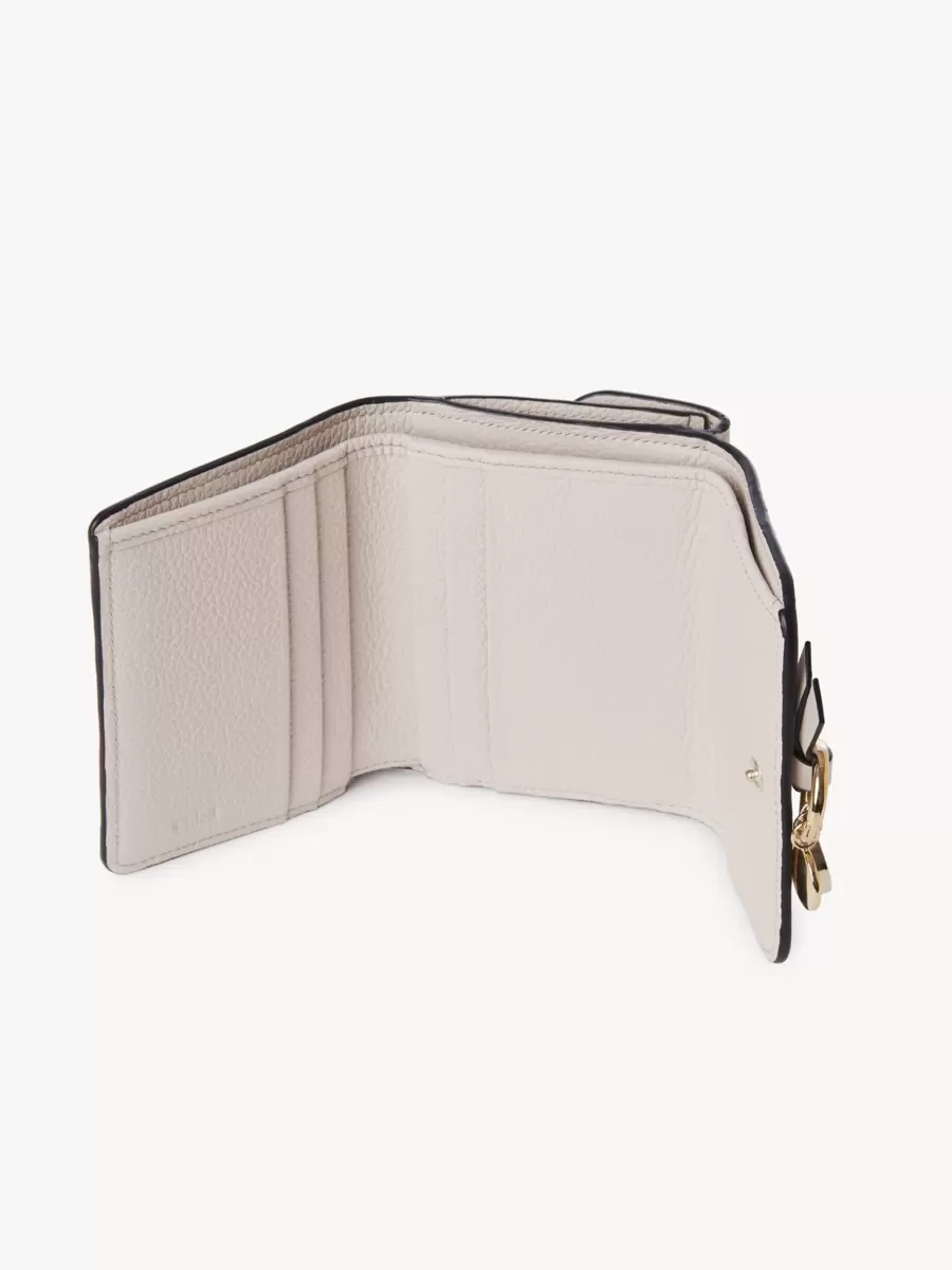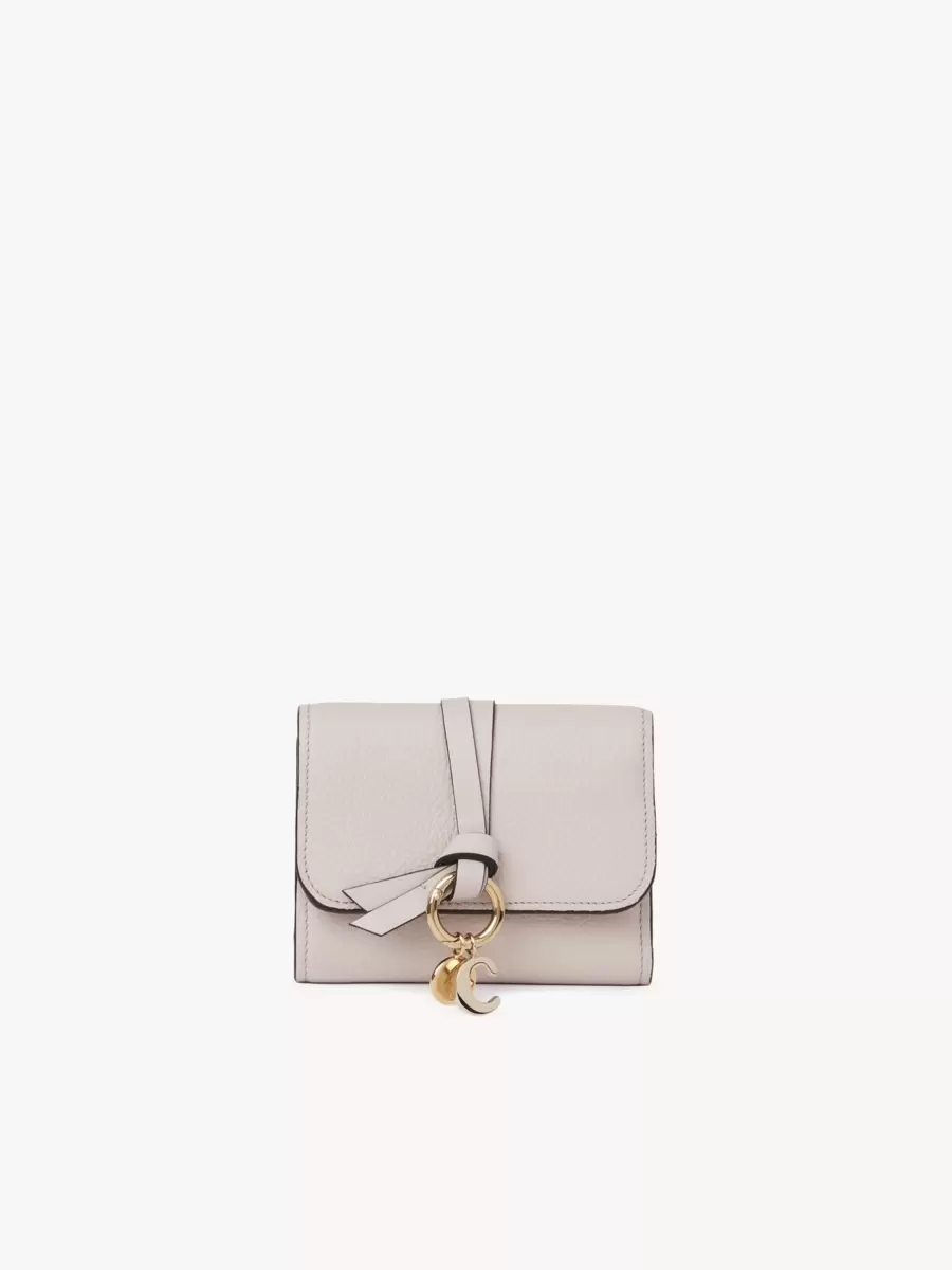 L’iconica linea Alphabet della Maison include questo portafoglio a tre ante in pelle di vitello martellata e lucida. Progettato per contenere l’essenziale, presenta diversi scomparti per carte e una tasca piatta. La parte anteriore è rifinita con un anello annodato e ciondoli con iniziali dorate firmati Chloé.