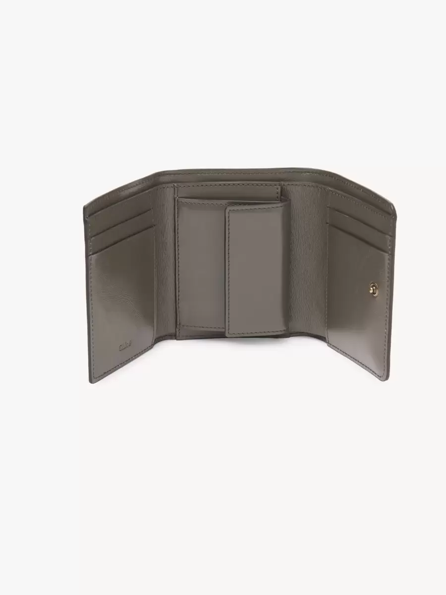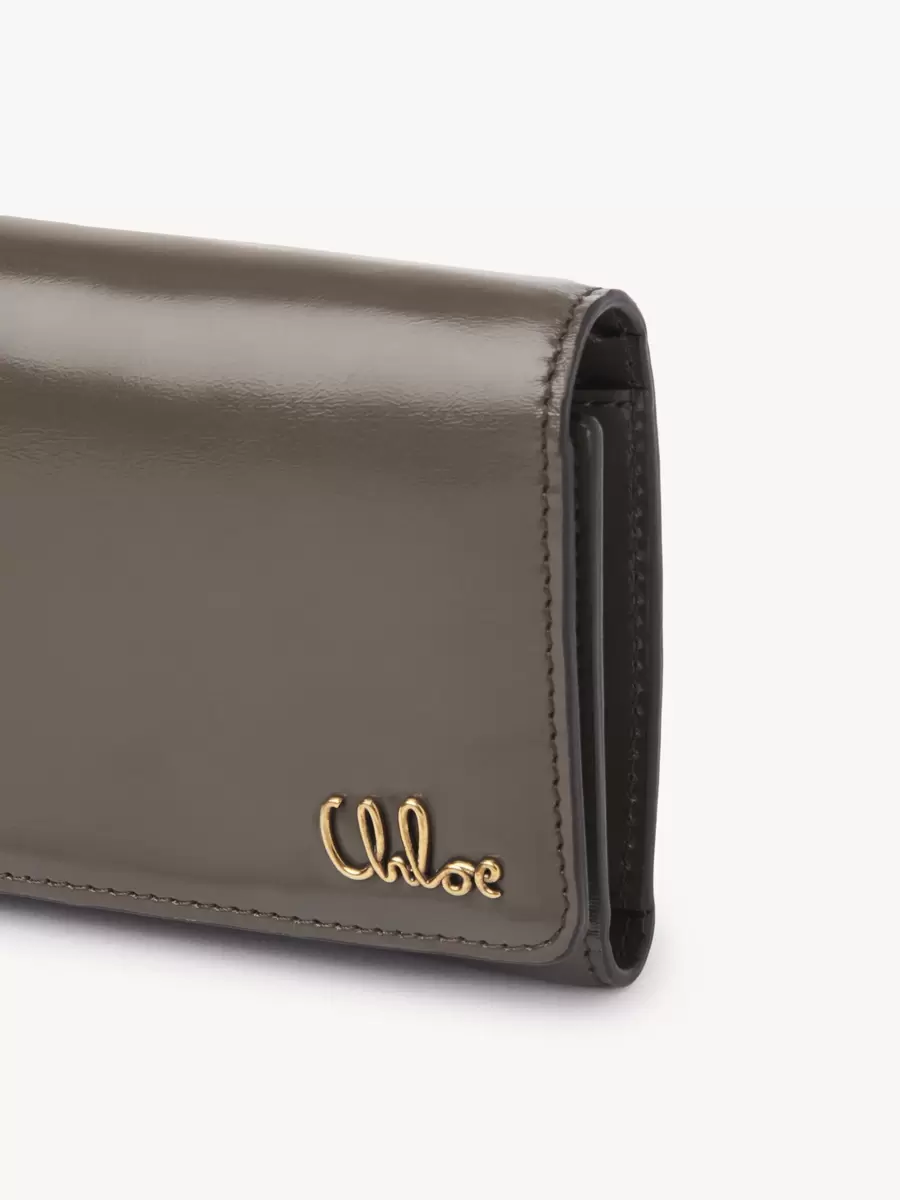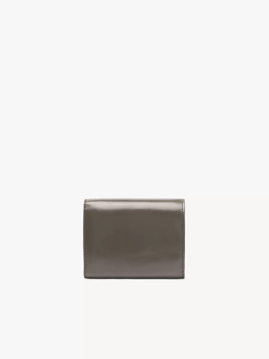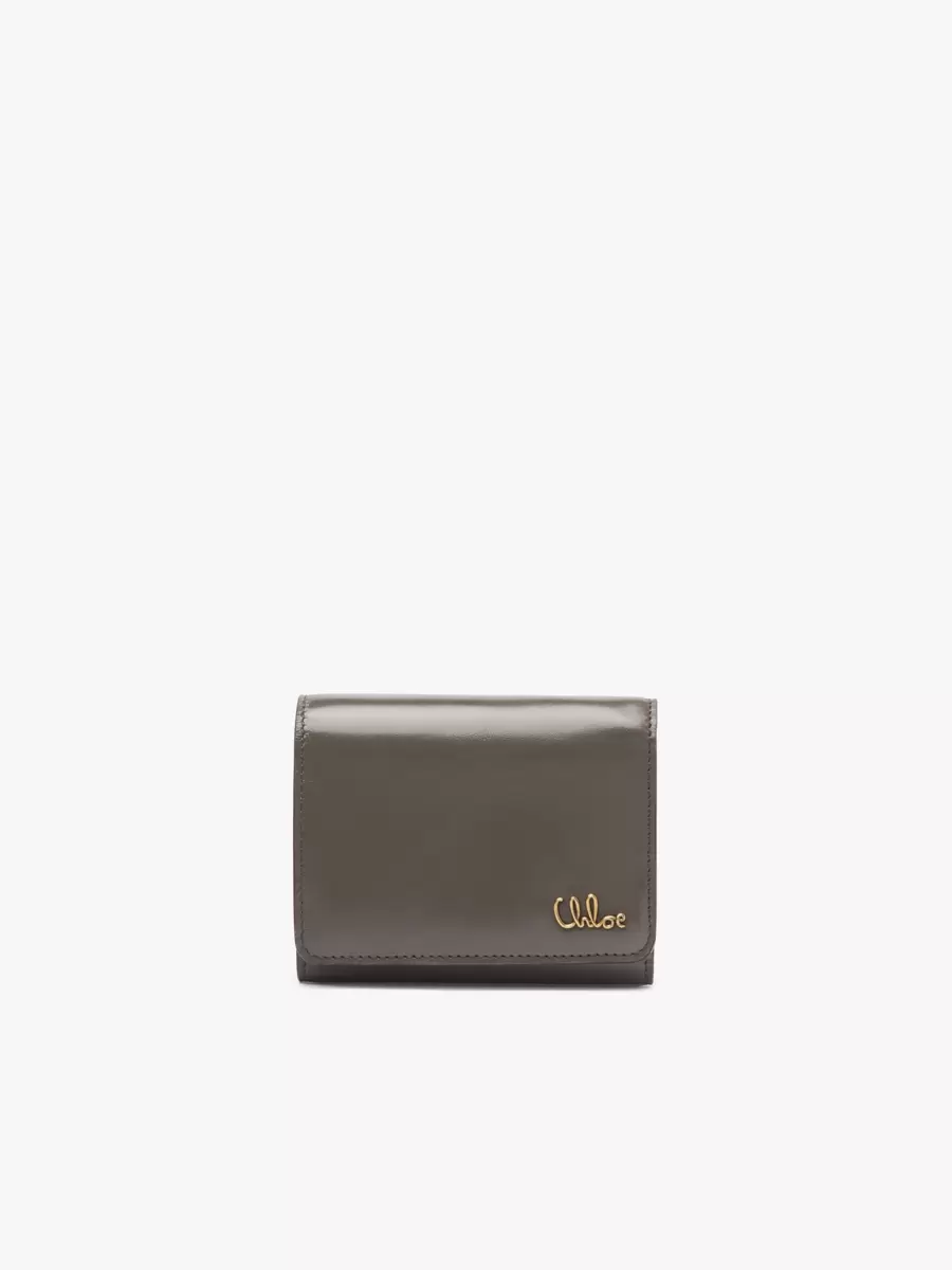 Realizzato in pelle di vitello lucida, il piccolo portafoglio tri-fold Chloé Iconic combina un design minimalista con una firma metallica proveniente dagli archivi della Maison.