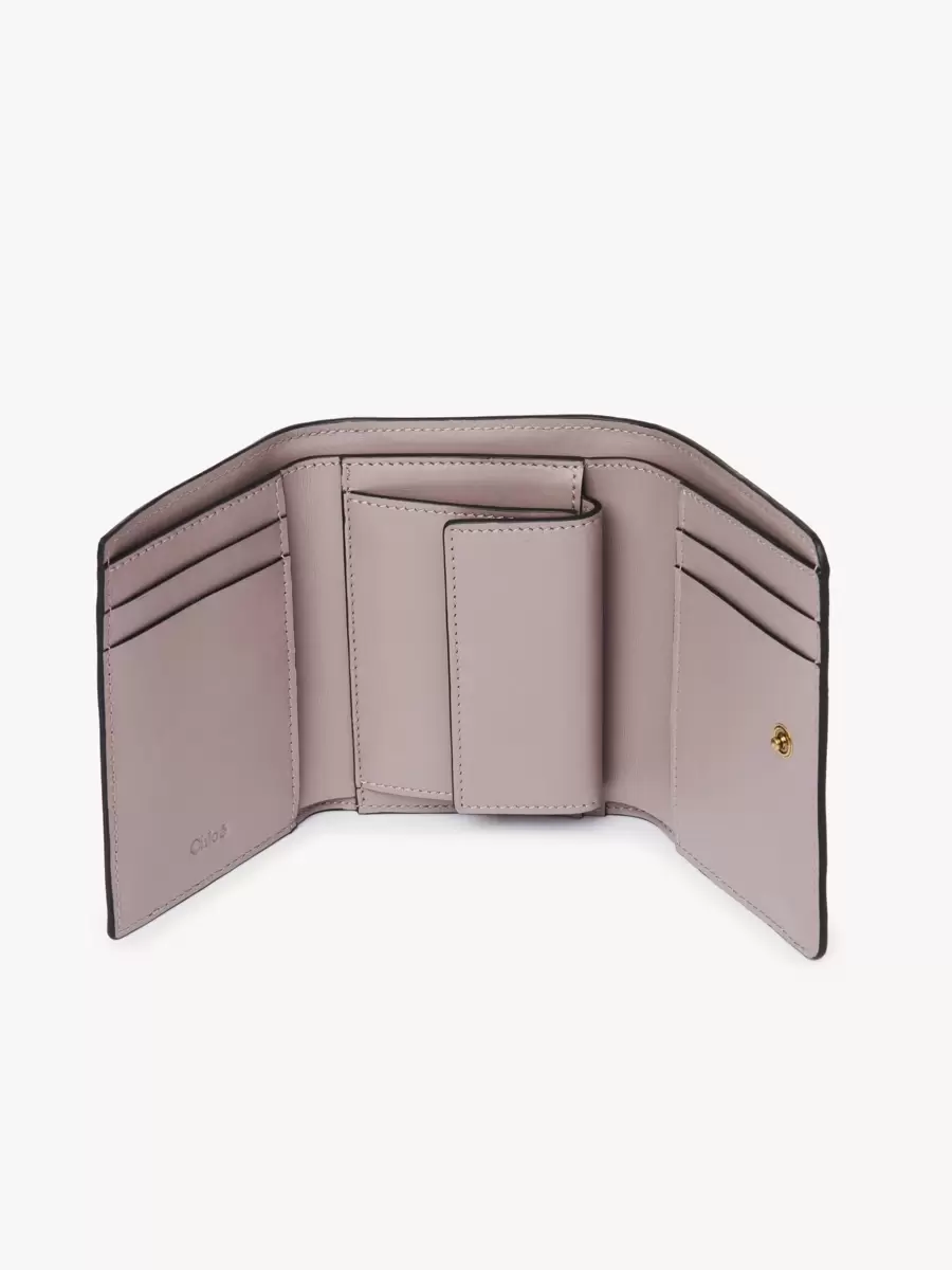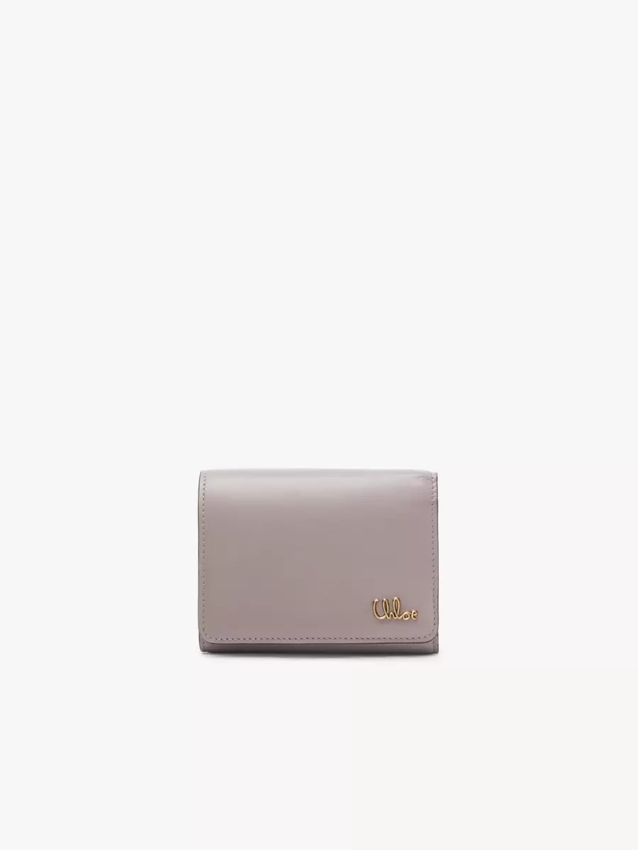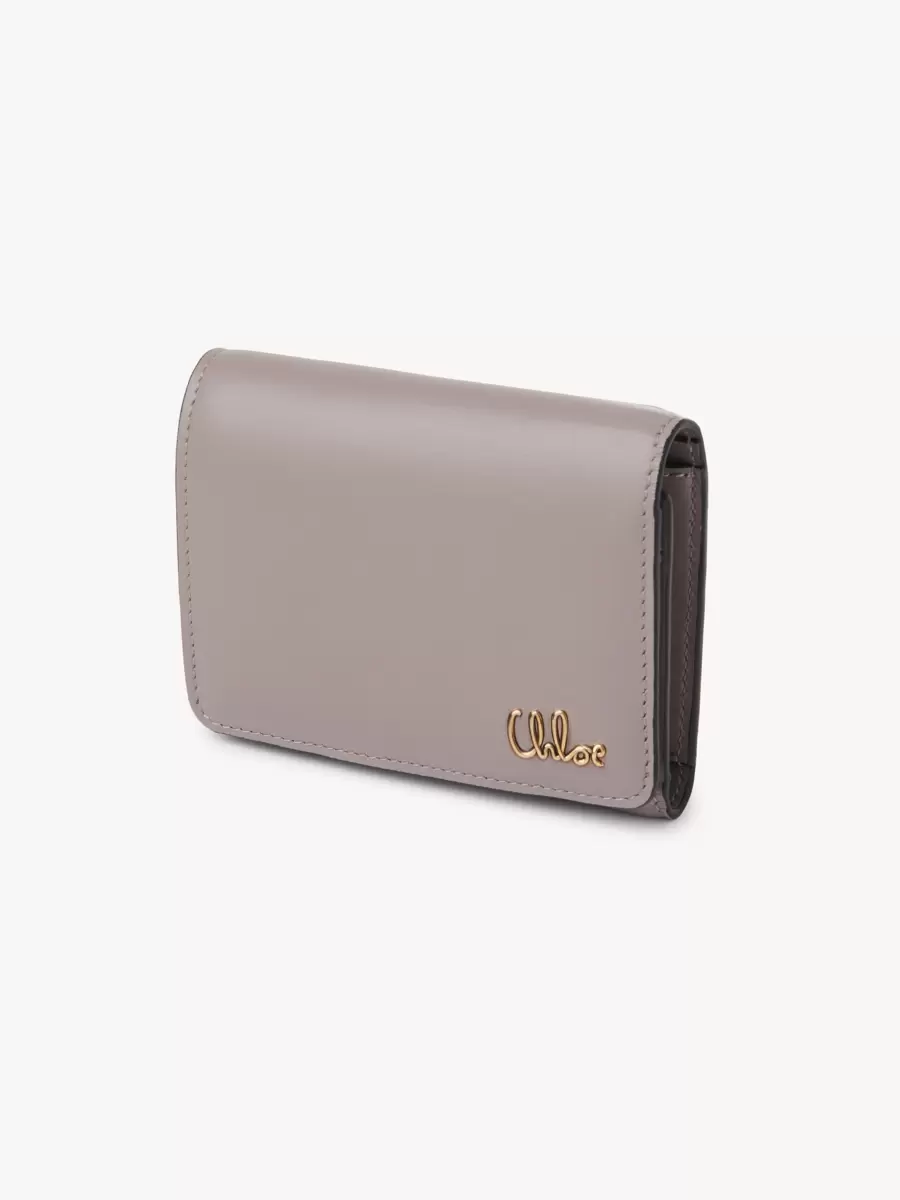 Realizzato in pelle di vitello lucida, il piccolo portafoglio tri-fold Chloé Iconic combina un design minimalista con una firma metallica proveniente dagli archivi della Maison.