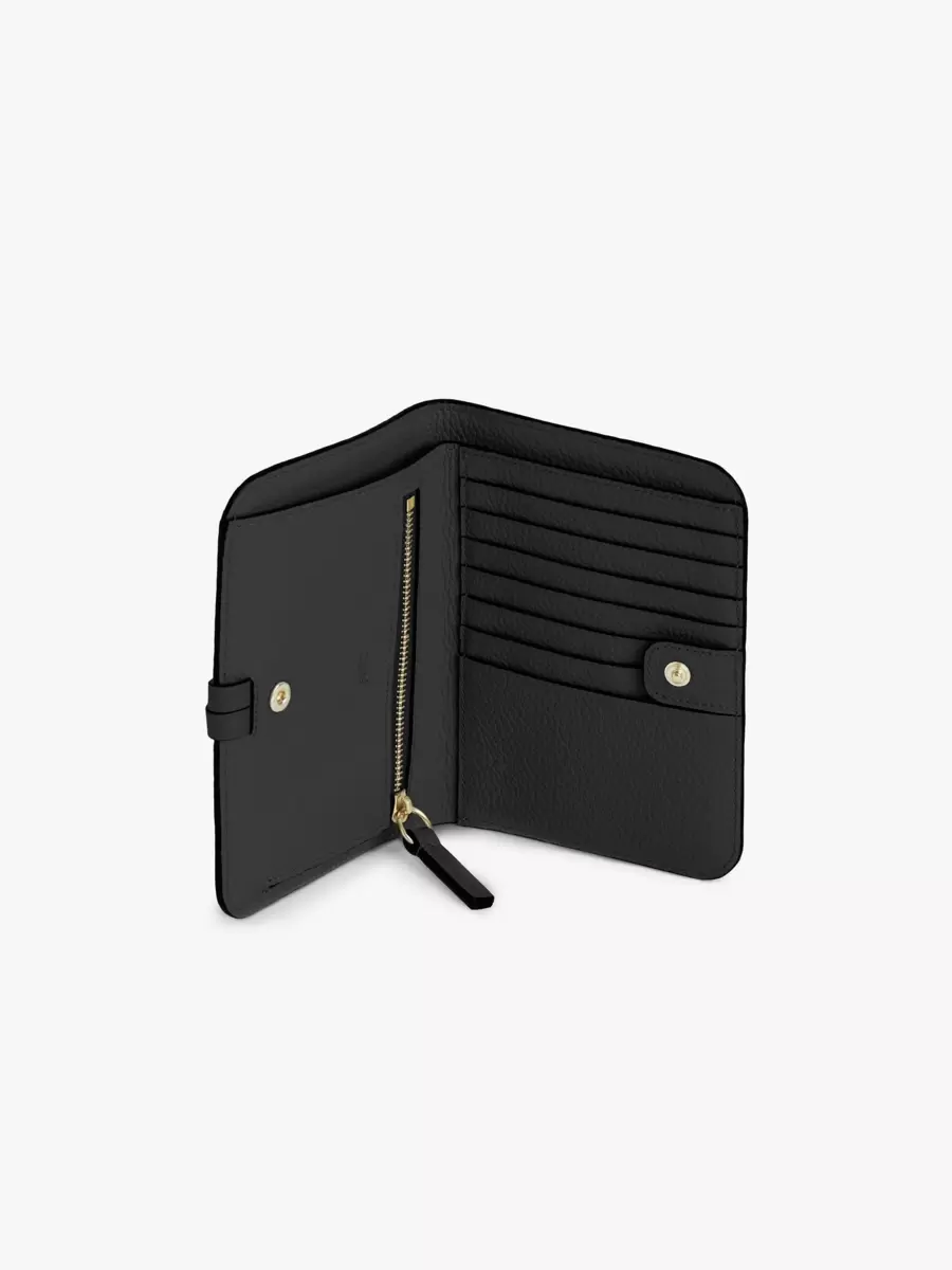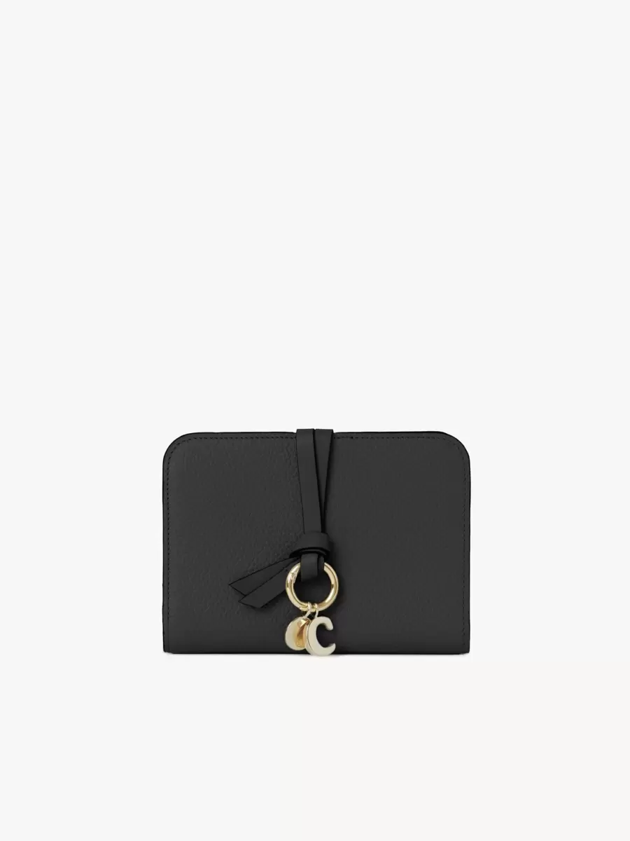 L’iconica linea Alphabet della Maison include questo portafoglio bifold in pelle di vitello granata e lucida, dotato di uno scomparto con cerniera e molteplici slot per carte.