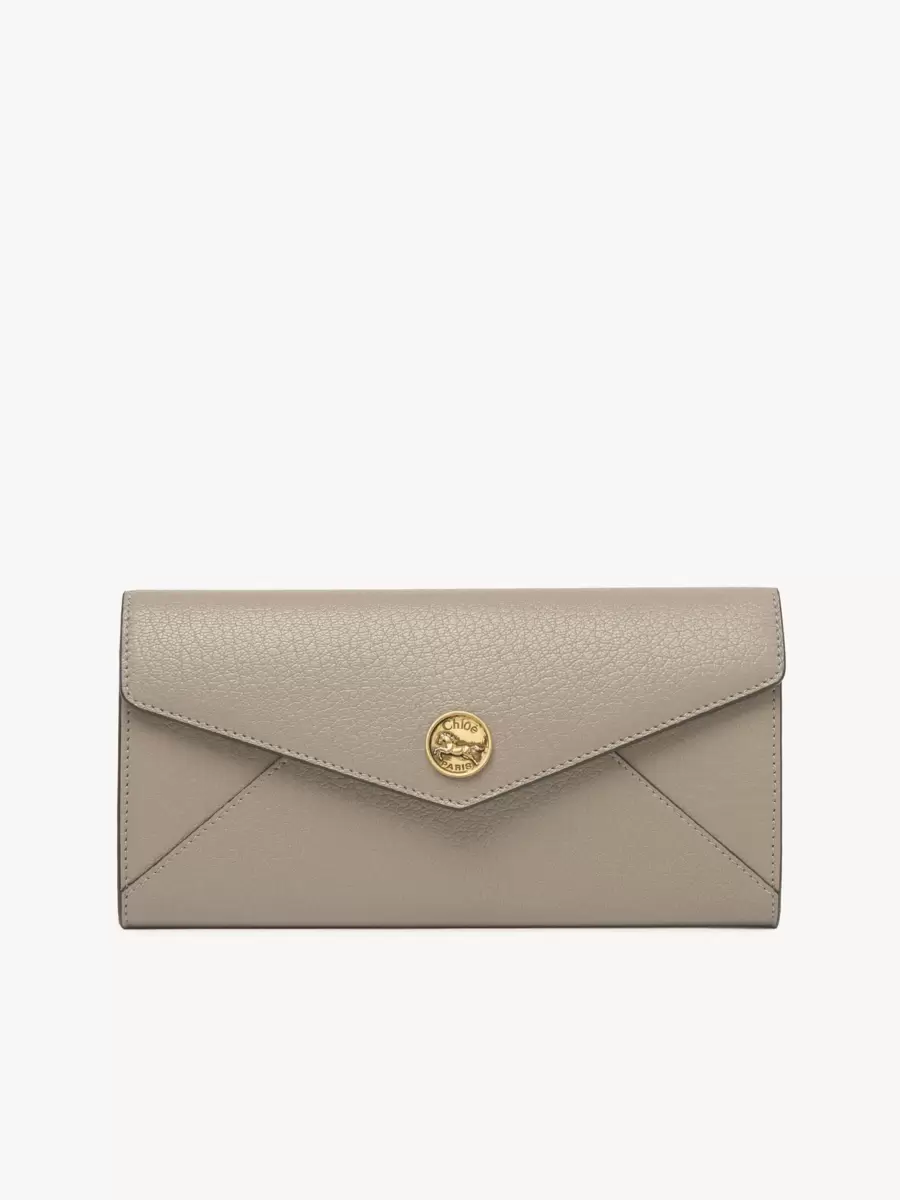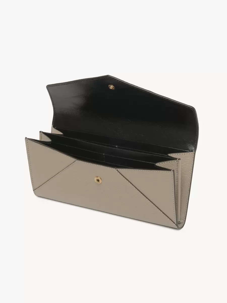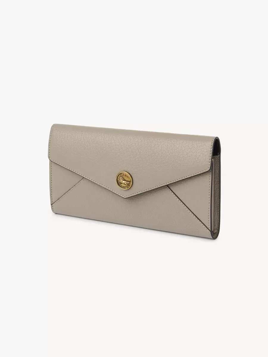 Portafoglio lungo Envelope con patta in pelle di capra granata