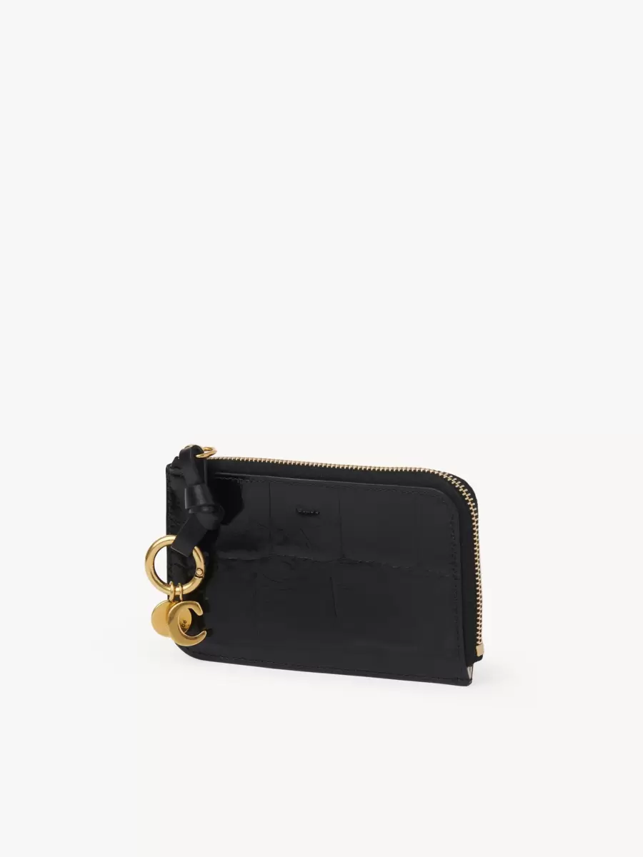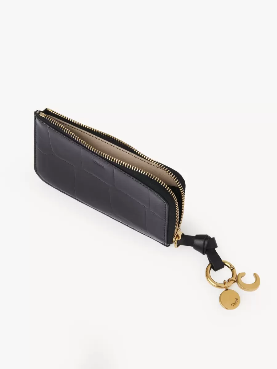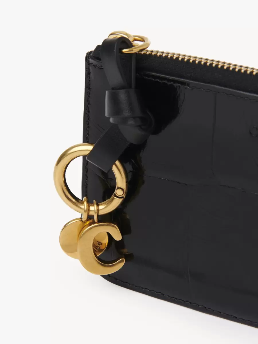 L’iconica linea Alphabet della Maison include questo portafoglio in pelle di vitello lucida con effetto coccodrillo goffrato. Progettato per contenere i tuoi oggetti essenziali, presenta diversi scomparti per carte e una tasca piatta sul retro. Un anello in pelle annodato è impreziosito da ciondoli con iniziali dorate disegnate da Chloé.