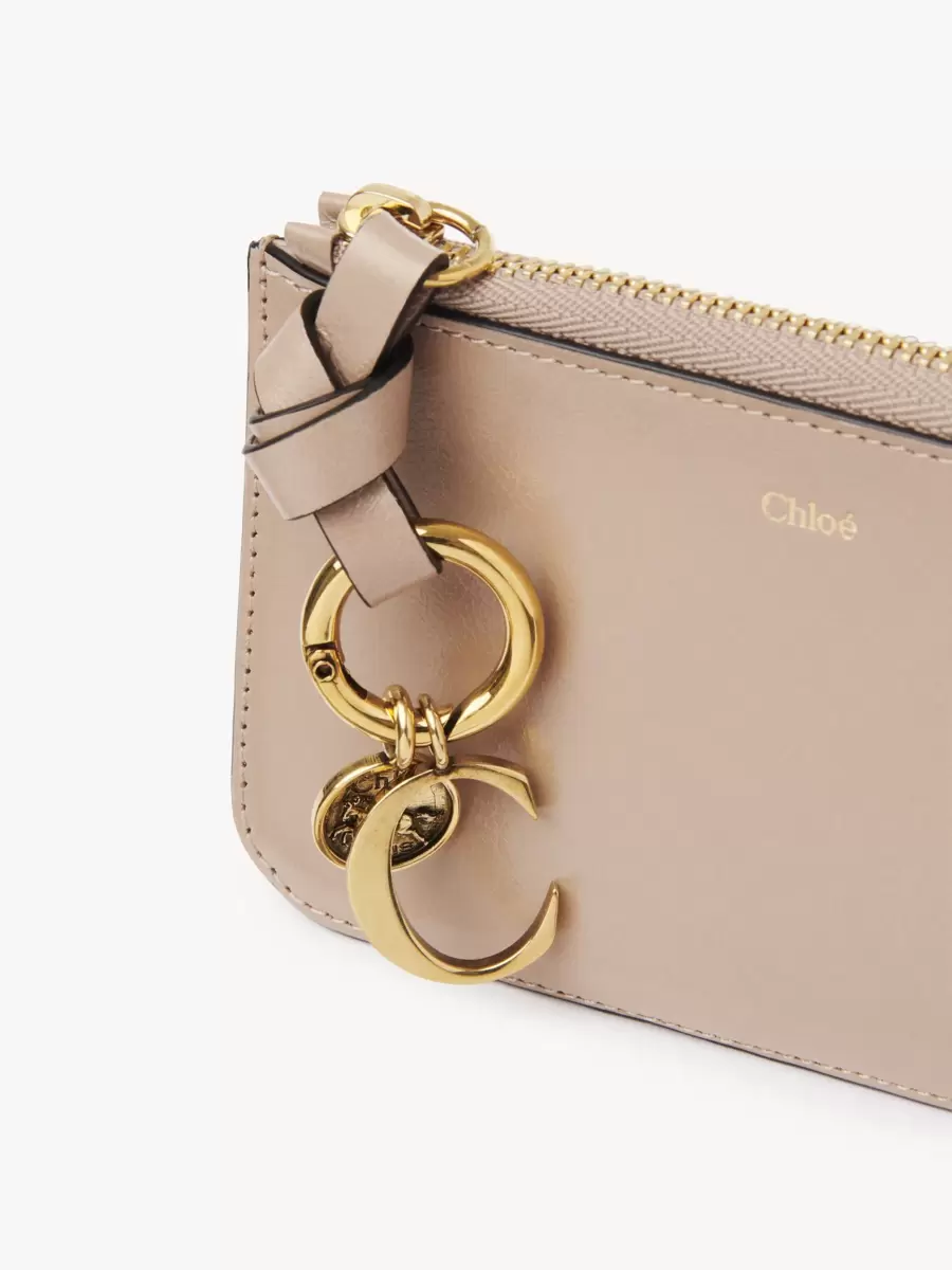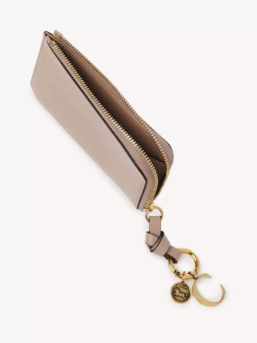 L’iconica linea Alphabet della Maison include questo portafoglio in pelle di vitello lucida. Progettato per contenere i tuoi oggetti essenziali, è dotato di numerosi scomparti per carte e di una tasca piatta sul retro. Un anello in pelle annodato è impreziosito dall’iniziale dorata e dai ciondoli a forma di medaglia di cavallo, simbolo di Chloé.