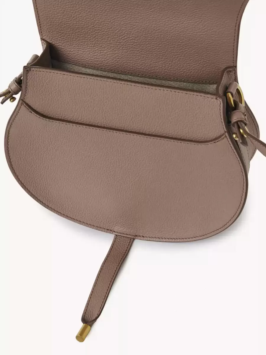 Questa borsa a tracolla Marcie è realizzata in pelle di vitello granata con una silhouette arrotondata e una linea superiore pulita. La patta presenta l’iconica cucitura a sella della linea, fissata con le caratteristiche nappe pendenti in pelle.