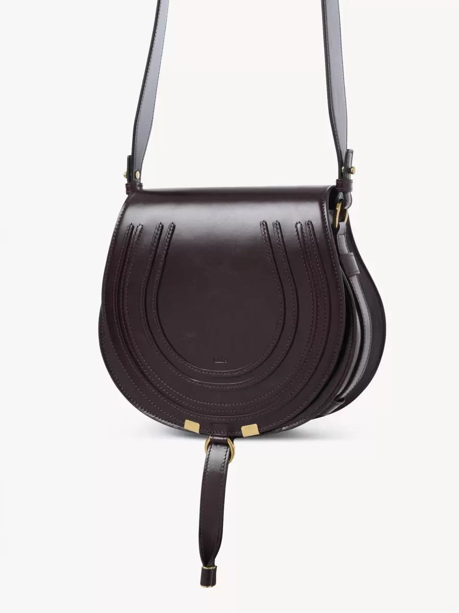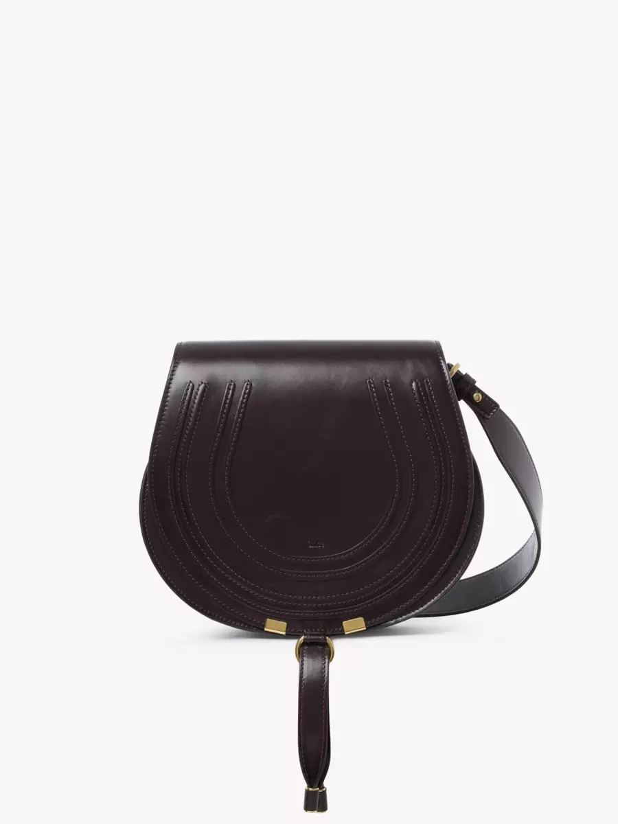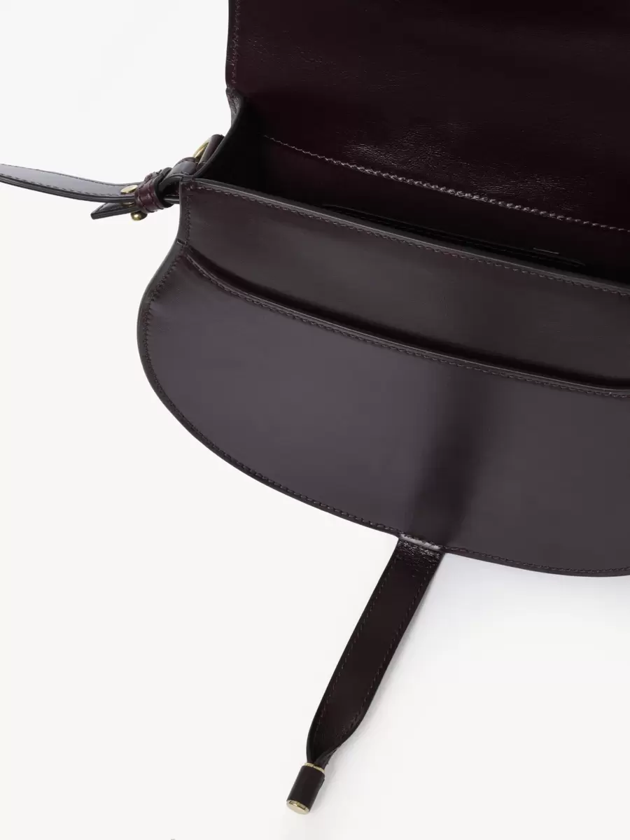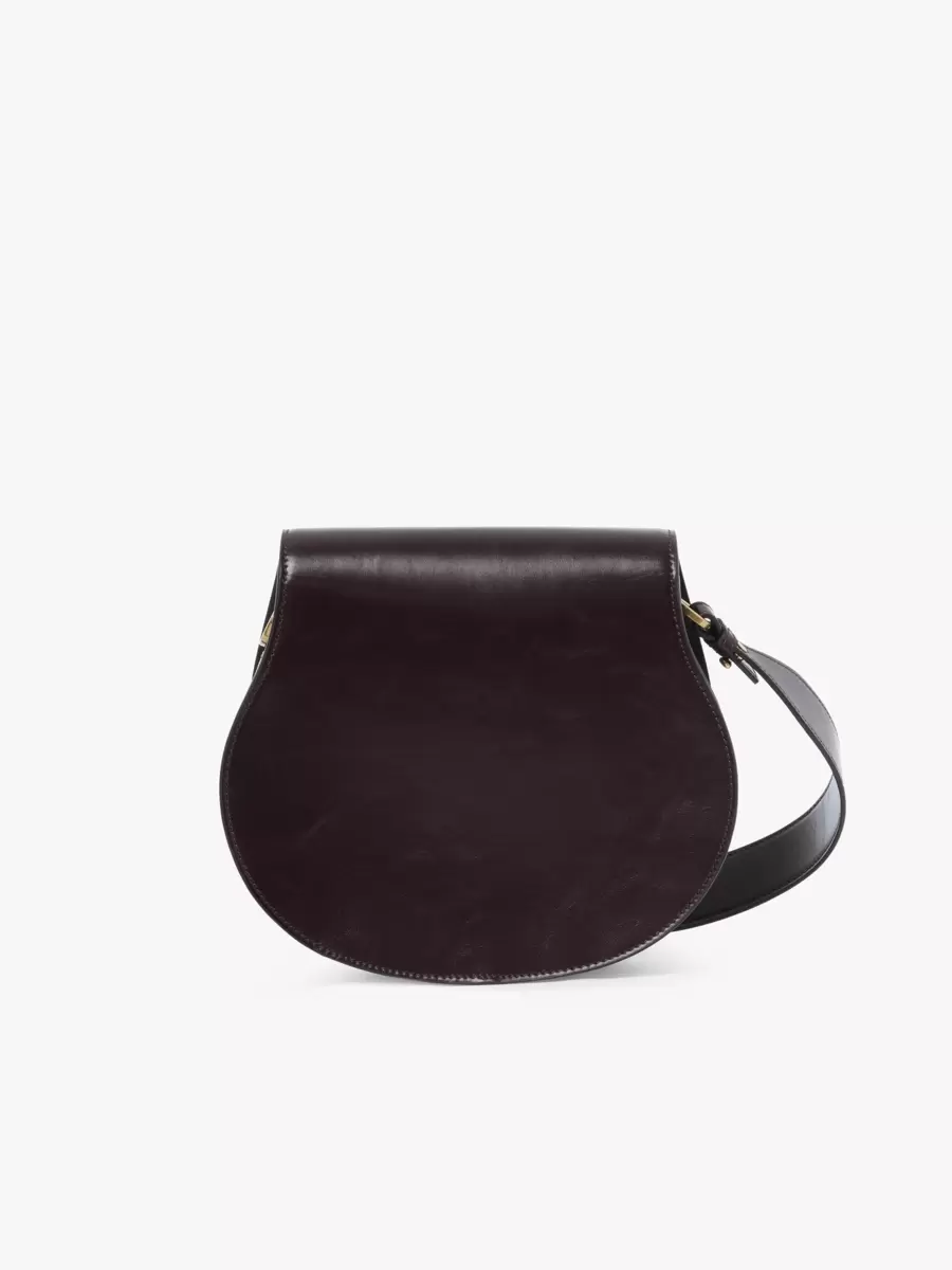 Questa borsa a sella Marcie è realizzata in pelle di vitello lucida con una silhouette arrotondata e una linea superiore pulita. La patta presenta l’iconica cucitura a sella della linea, fissata con le caratteristiche nappe in pelle pendenti.