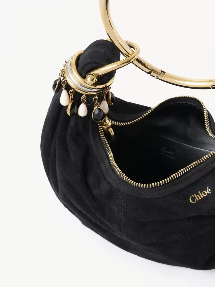 Mini borsa Bracelet Hobo in pelle di capra scamosciata con perline