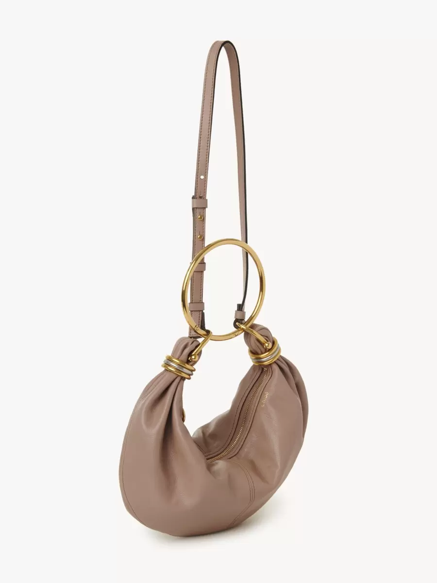 Borsa Bracelet hobo piccola in pelle di vitello martellata lucida