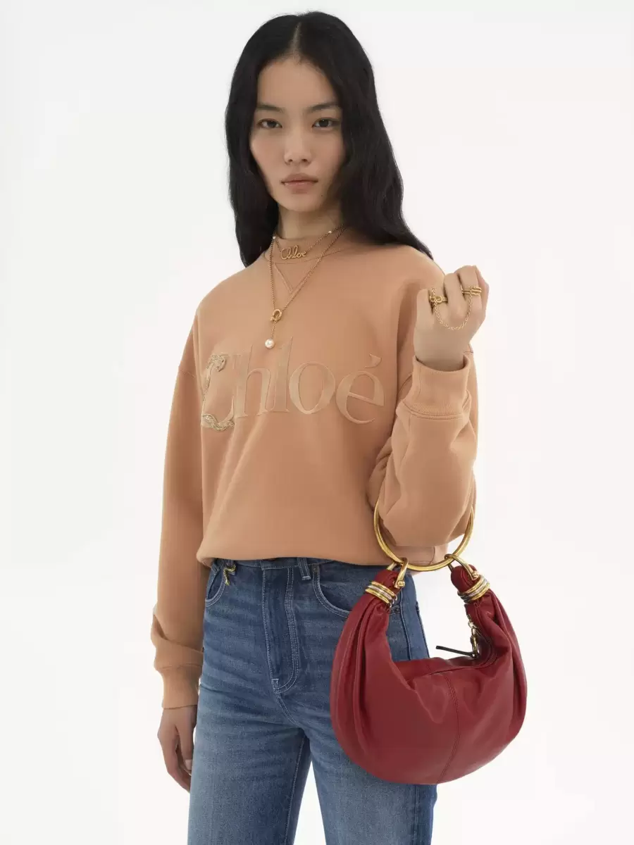 Ispirata agli archivi della Maison, questa piccola borsa Bracelet Hobo è realizzata in pelle di vitello martellata lucida. La forma morbida e arrotondata è impreziosita da un manico a bracciale e da anelli bicolore sovrapposti alle estremità.