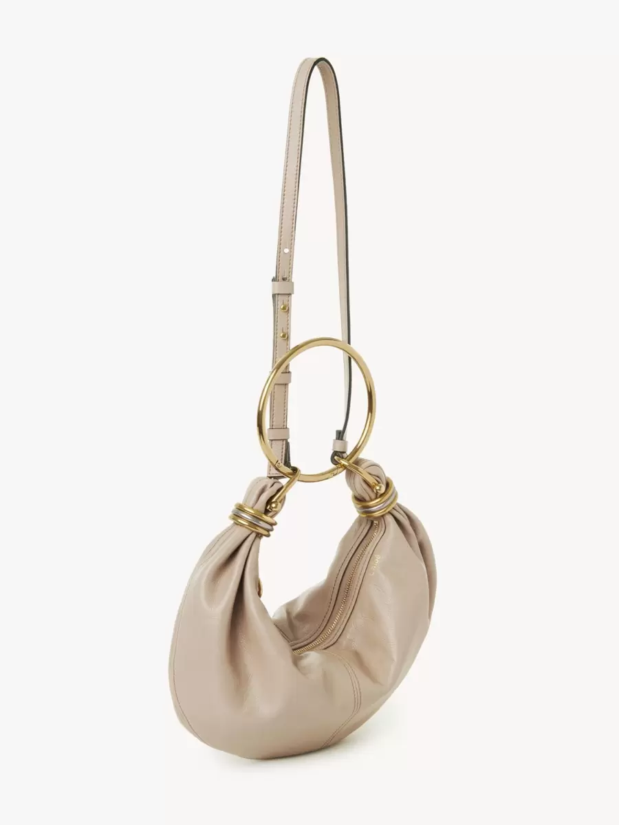 Borsa Bracelet Hobo piccola in pelle di vitello martellata lucida