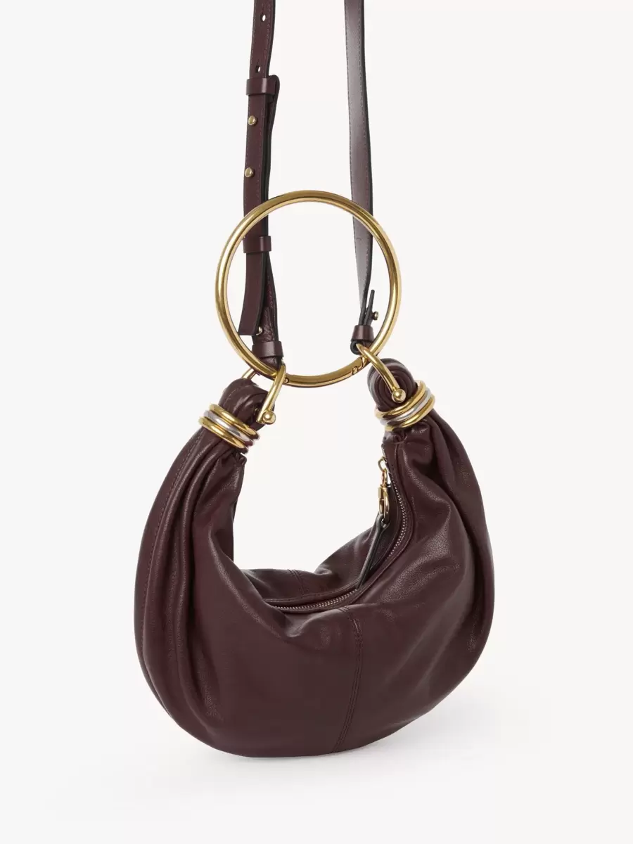 Ispirata agli archivi della Maison, questa piccola borsa Bracelet Hobo è realizzata in pelle di bufalo martellata. La forma morbida e arrotondata è impreziosita da un manico a bracciale e da anelli bicolore sovrapposti alle estremità.
