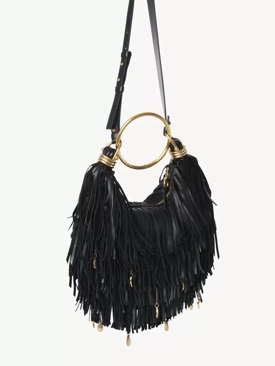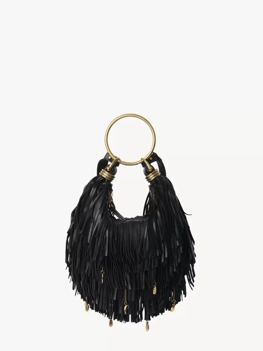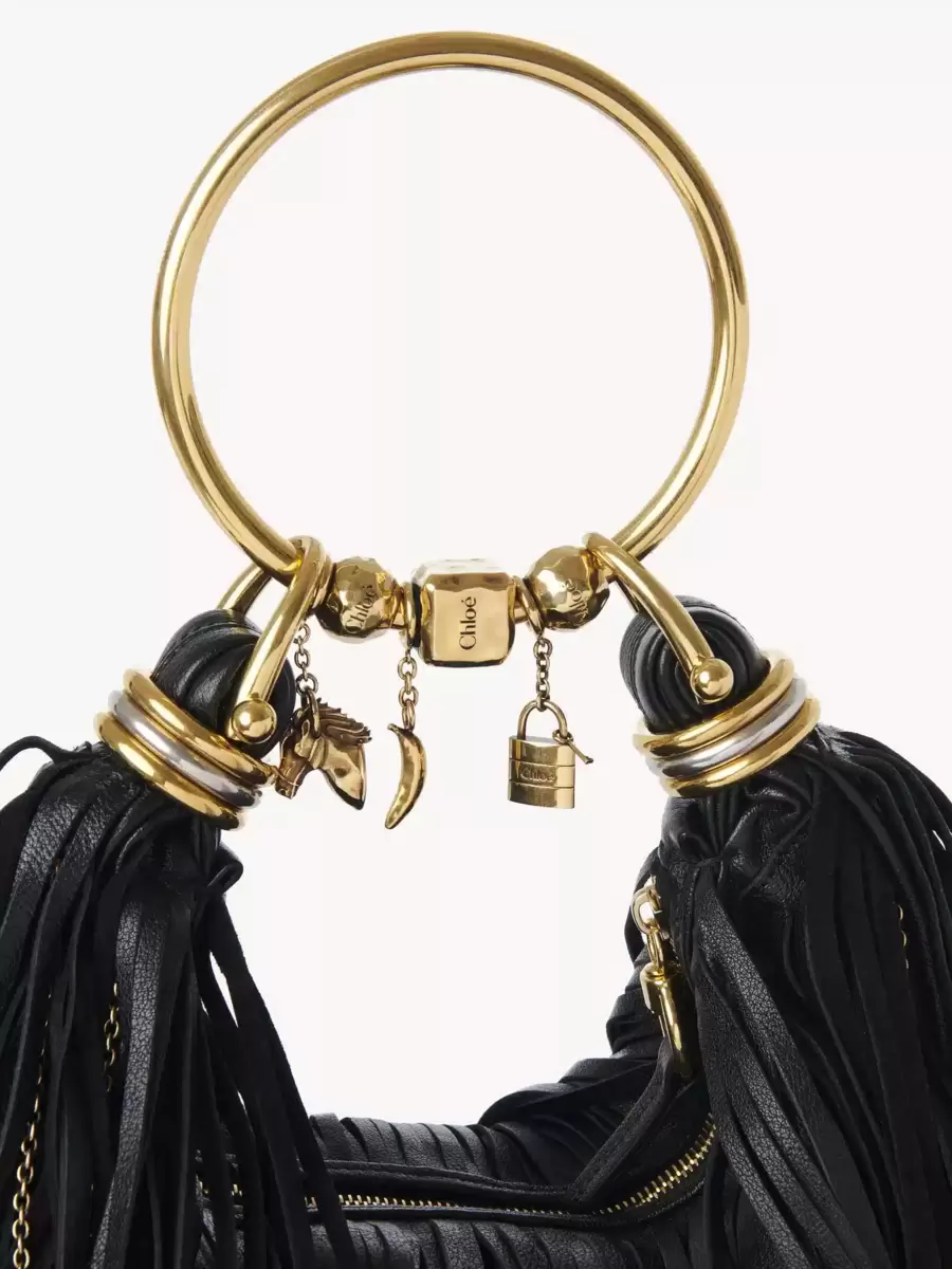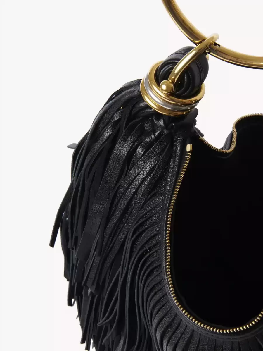 Piccola borsa Bracelet Hobo in pelle di bufalo con frange e ornamenti in metallo