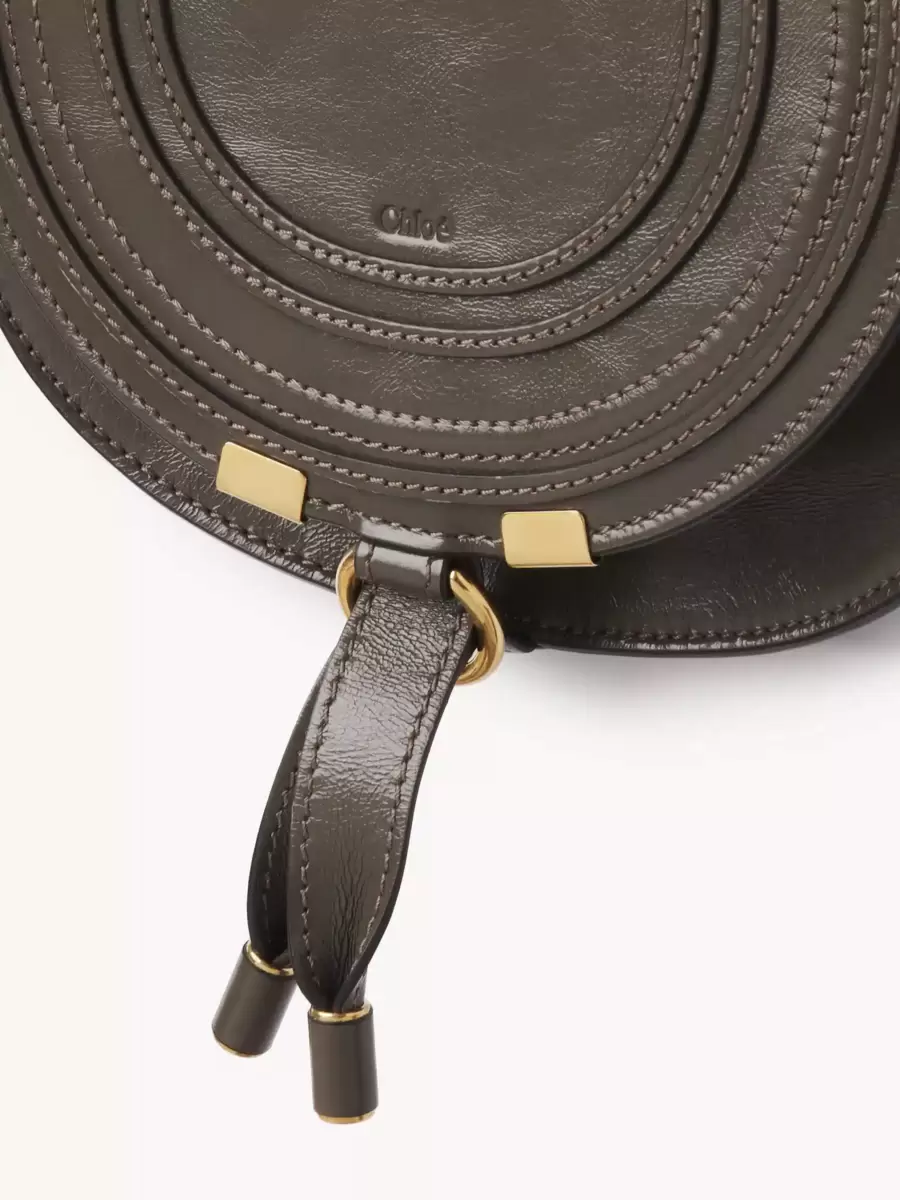 Questa piccola borsa a sella Marcie è realizzata in pelle di vitello lucida con una silhouette arrotondata e una linea superiore pulita. La patta presenta l’iconica cucitura a sella della linea, fissata con le caratteristiche nappe in pelle pendenti.