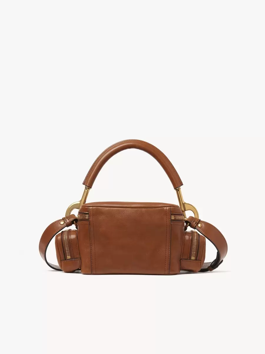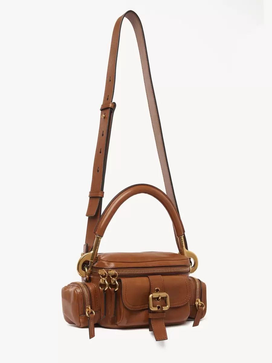 Questa piccola borsa per fotocamera è realizzata in pelle di bufalo naturale lucida. Le sue numerose tasche sono impreziosite da cerniere e fibbie rinnovate, tipiche dell’iconica borsa Paddington.