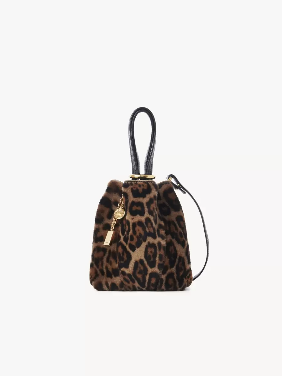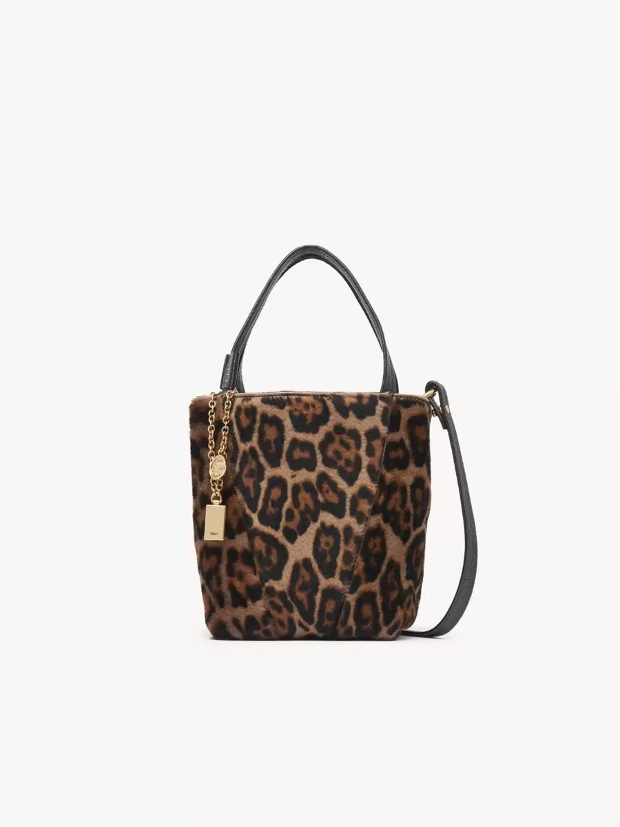 Borsa tote Chloé Spin piccola in shearling con stampa leopardata