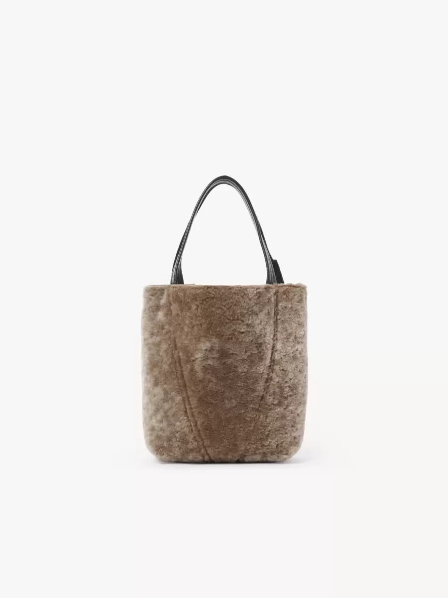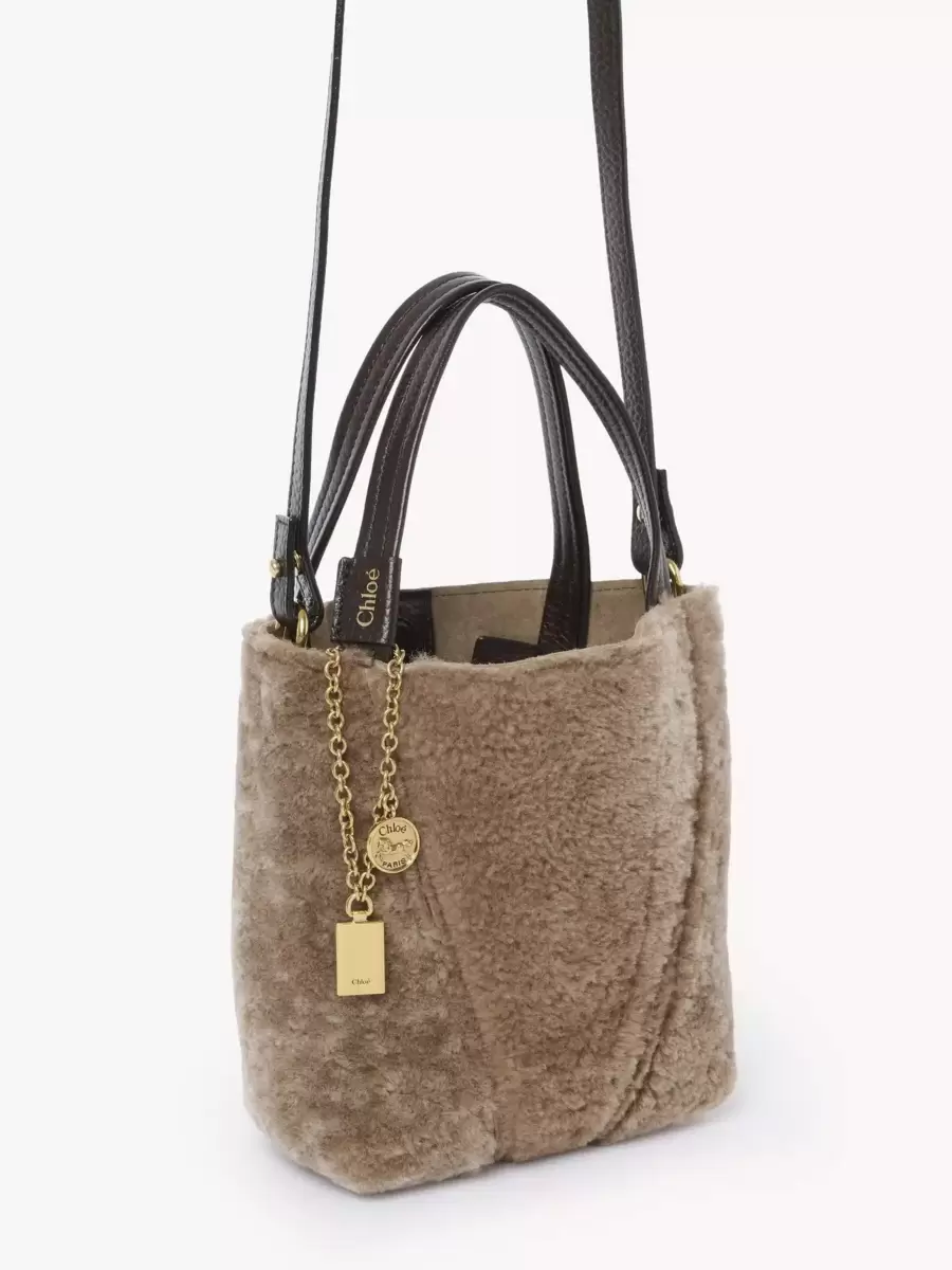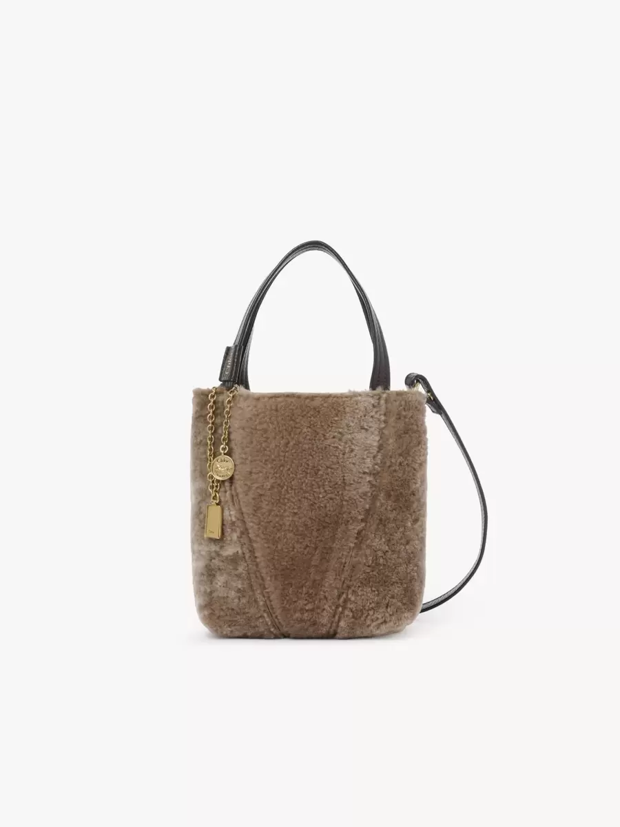 Realizzata in shearling, la piccola borsa tote Chloé Spin ha una silhouette minimalista impreziosita da linee grafiche. Una catena pendente presenta le medaglie Chloé e Horse, simbolo della Maison.