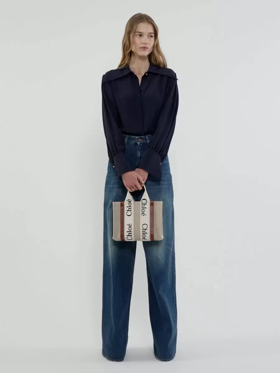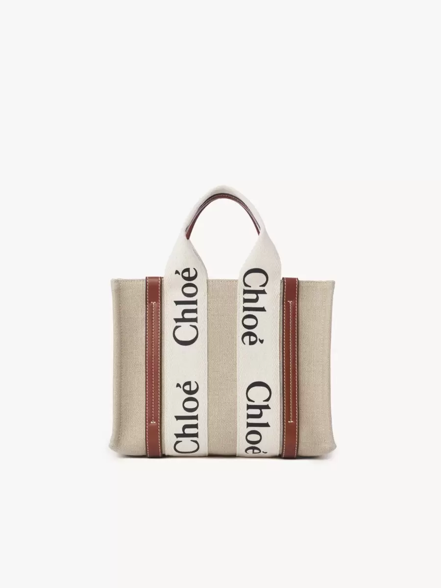 La linea Woody è caratterizzata dal logo Chloé, ripreso dalle iconiche mules della Maison. Presenta una silhouette moderna e minimalista che spazia dalle dimensioni nano a quelle grandi.