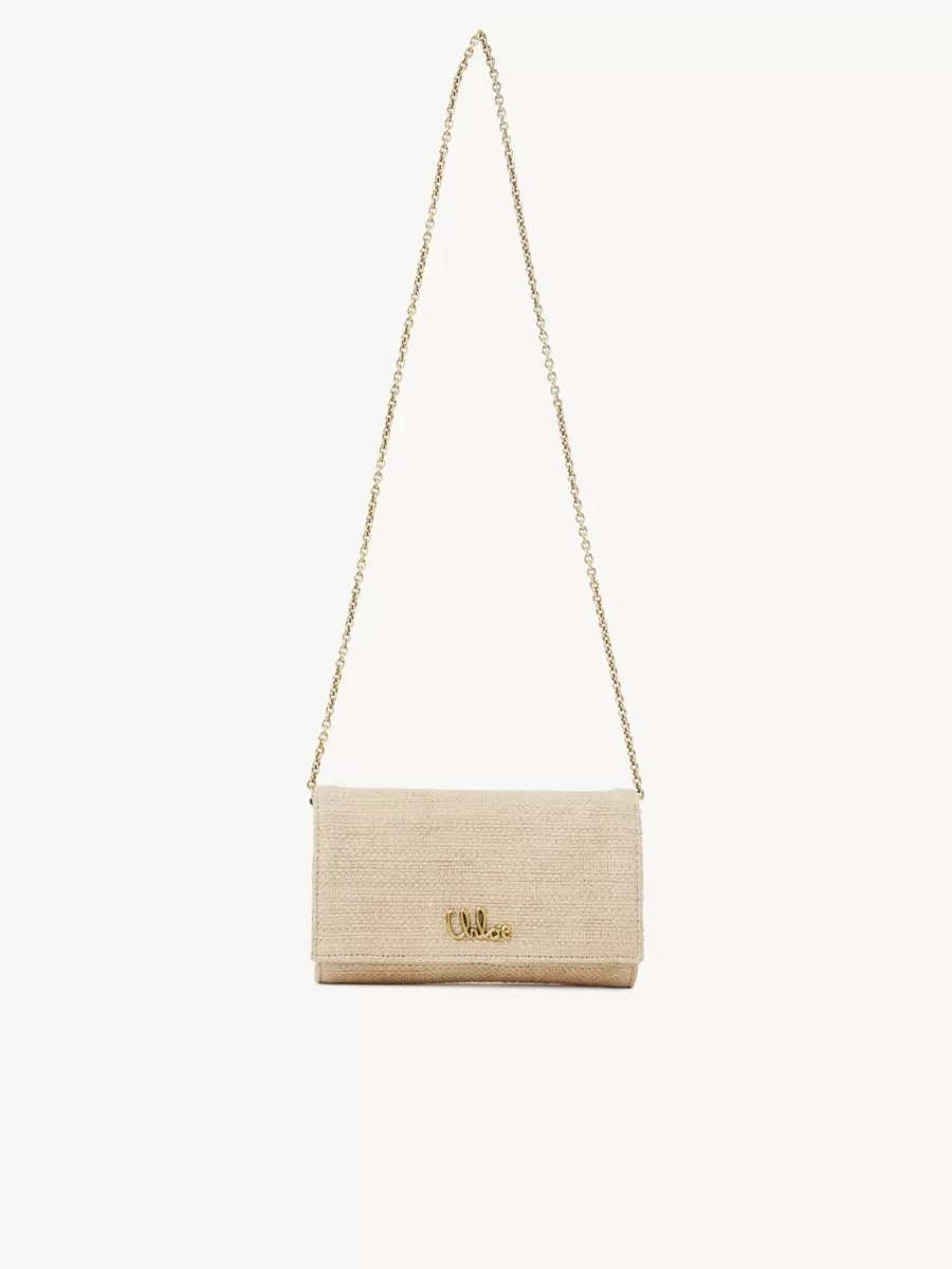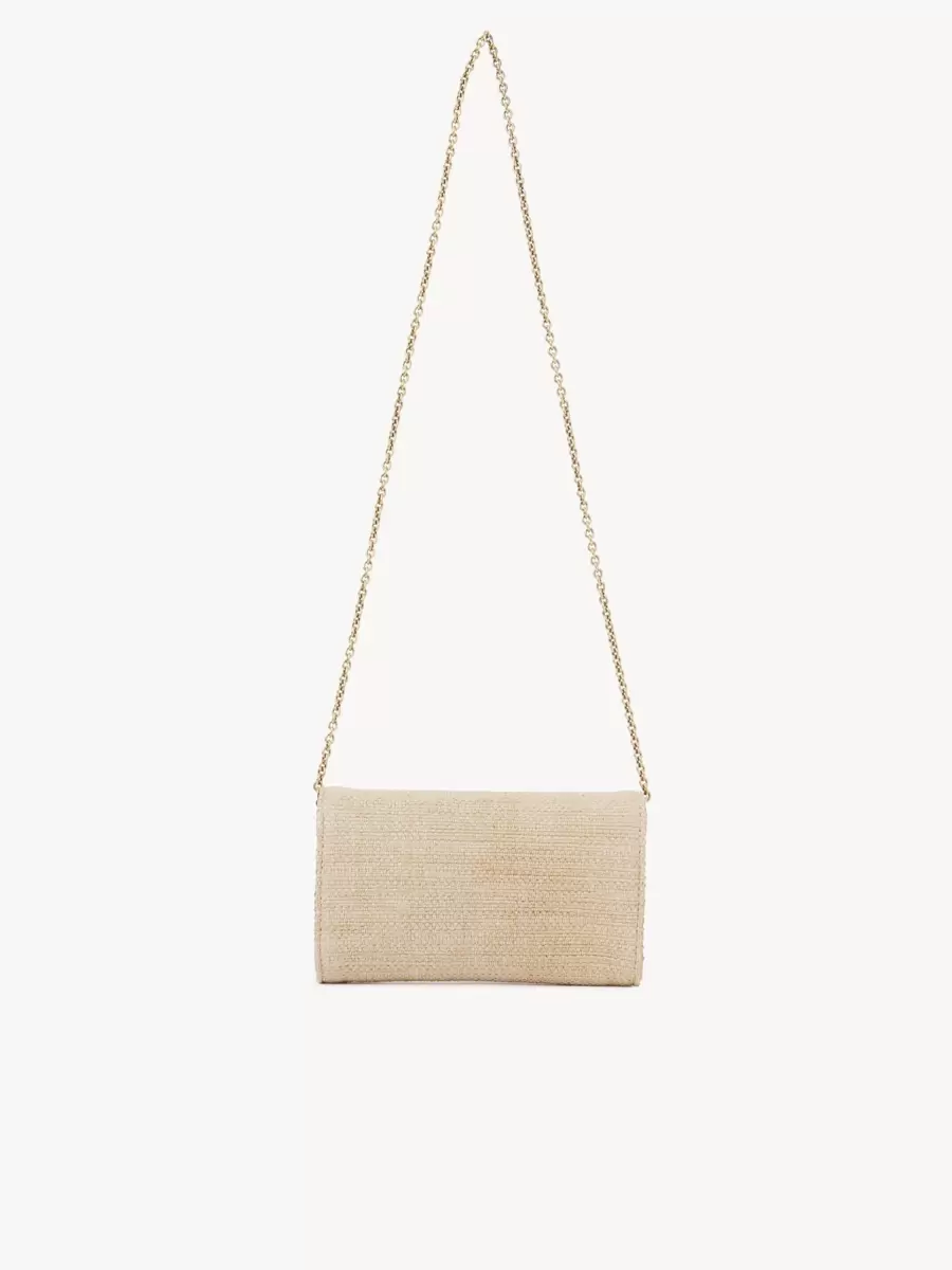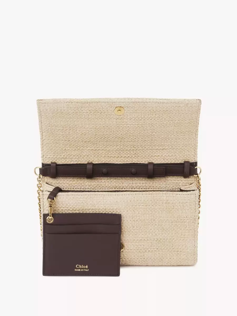 Realizzato in fibre effetto rafia, questo portafoglio con patta e catena Chloé Iconic unisce una silhouette minimalista a una firma metallica proveniente dagli archivi della Maison.