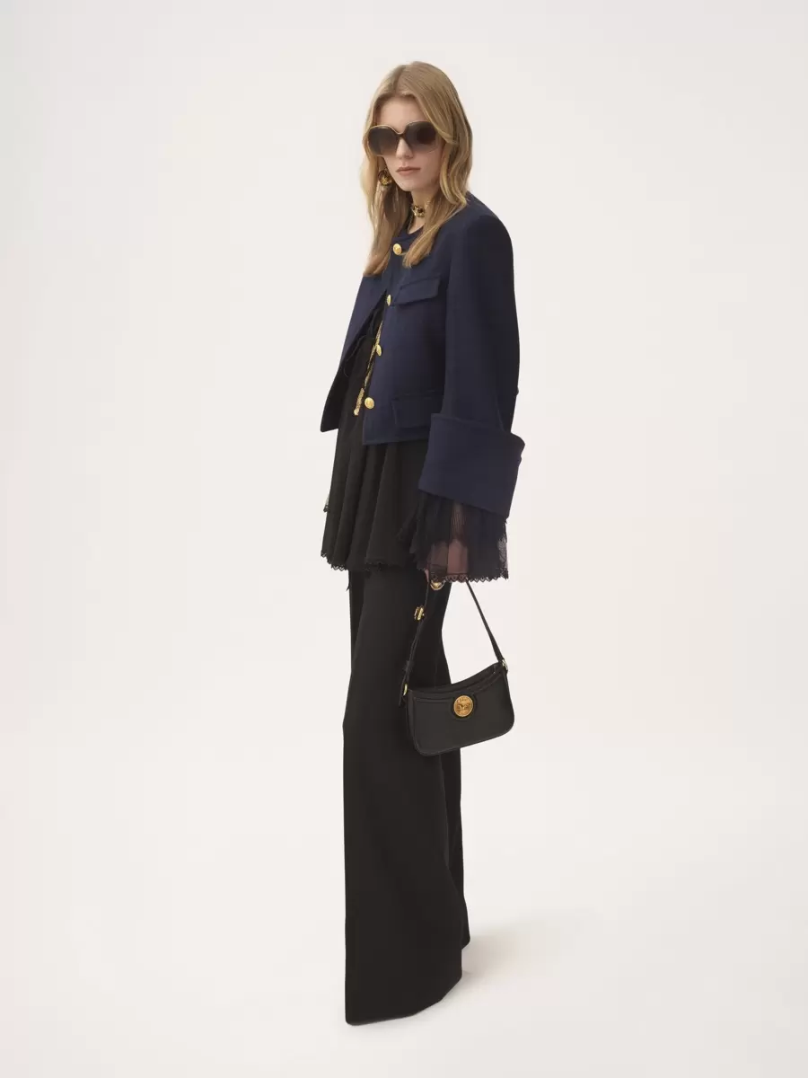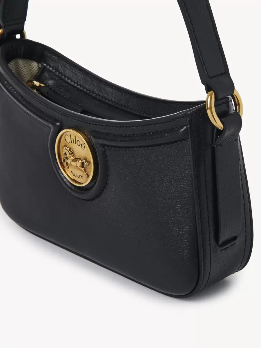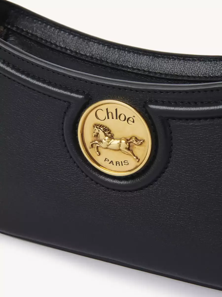 Questa borsa a spalla Horse Medal è realizzata in pelle di bufalo granata. La silhouette strutturata abbina linee grafiche all’iconica medaglia dorata della Maison, con l’immagine in rilievo di un cavallo al galoppo e l’incisione del logo Chloé Paris.