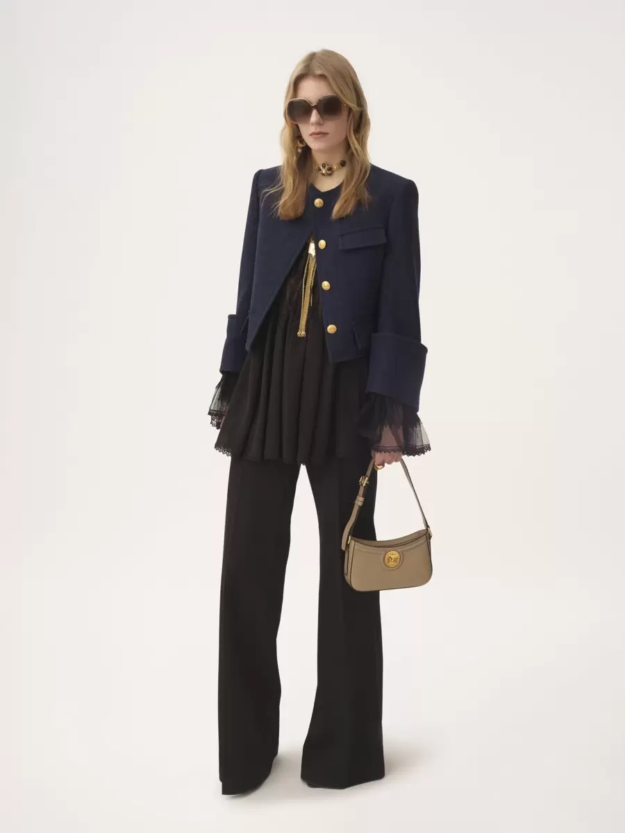 Questa borsa a spalla Horse Medal è realizzata in pelle di bufalo granata. La silhouette strutturata abbina linee grafiche all’iconica medaglia dorata della Maison, con l’immagine in rilievo di un cavallo al galoppo e l’incisione del logo Chloé Paris.