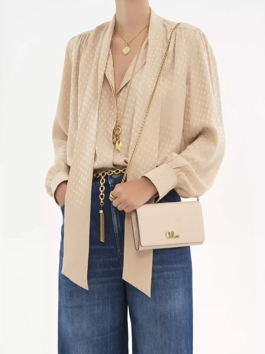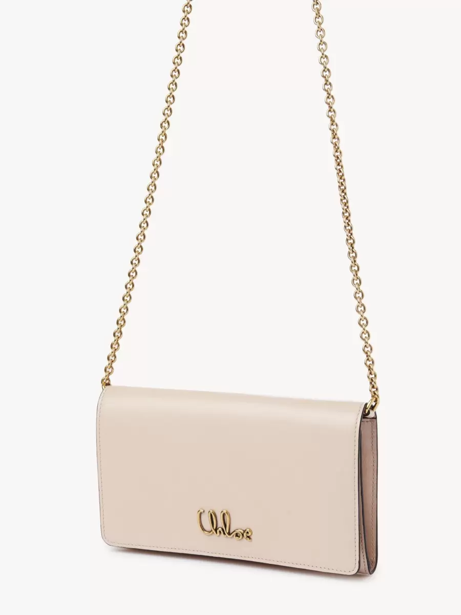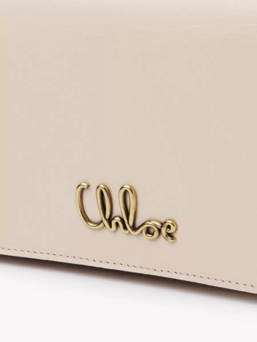 Portafoglio Chloé Iconic con patta e catena in pelle lucida