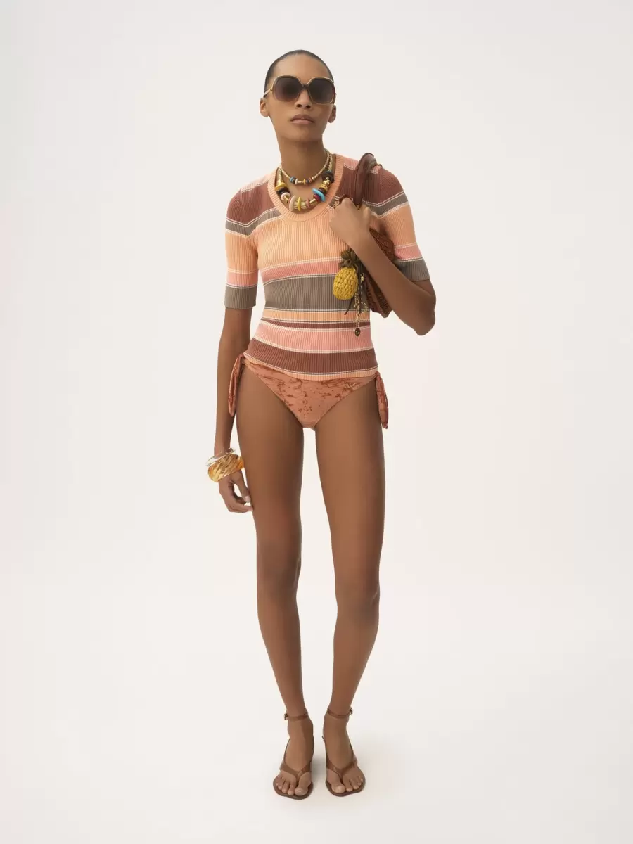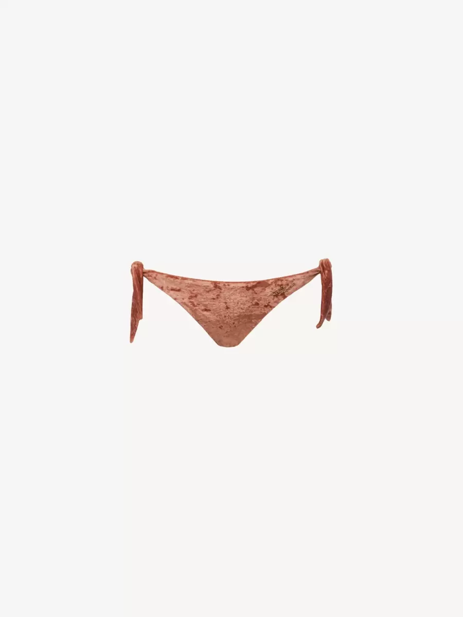Slip da bikini in velluto elasticizzato, annodato ai lati e firmato con una targhetta con logo Chloé color oro.