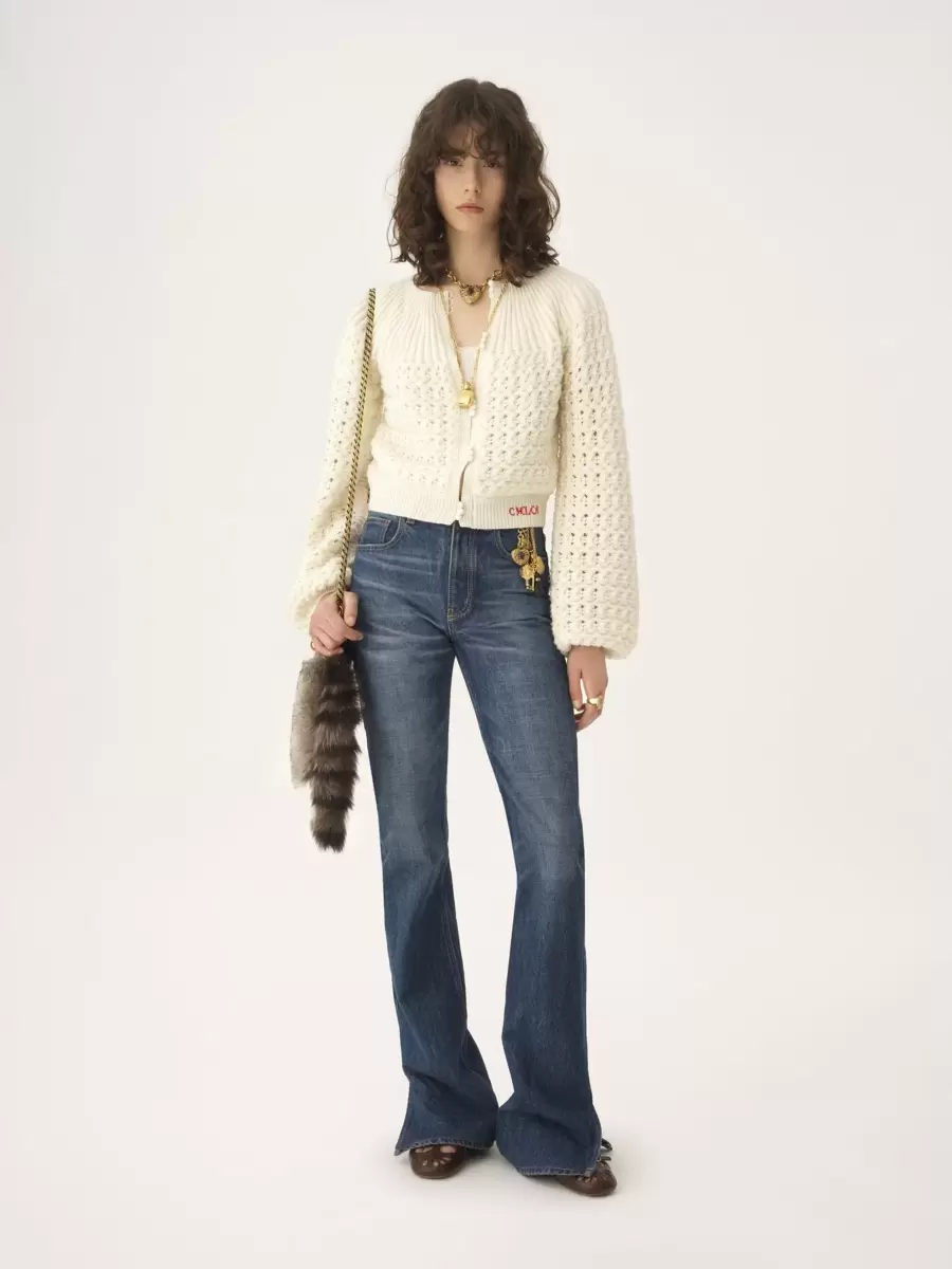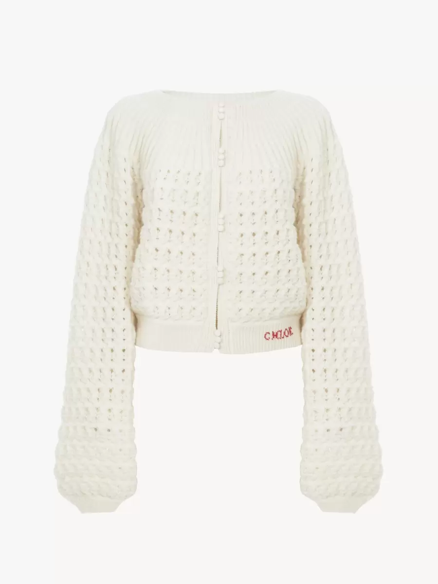 Cardigan girocollo in maglia di lana e cashmere spessa e a basso impatto, con maniche ampie, bottoni ricoperti in tessuto, finiture a coste e ricamo del logo Chloé sull’orlo.