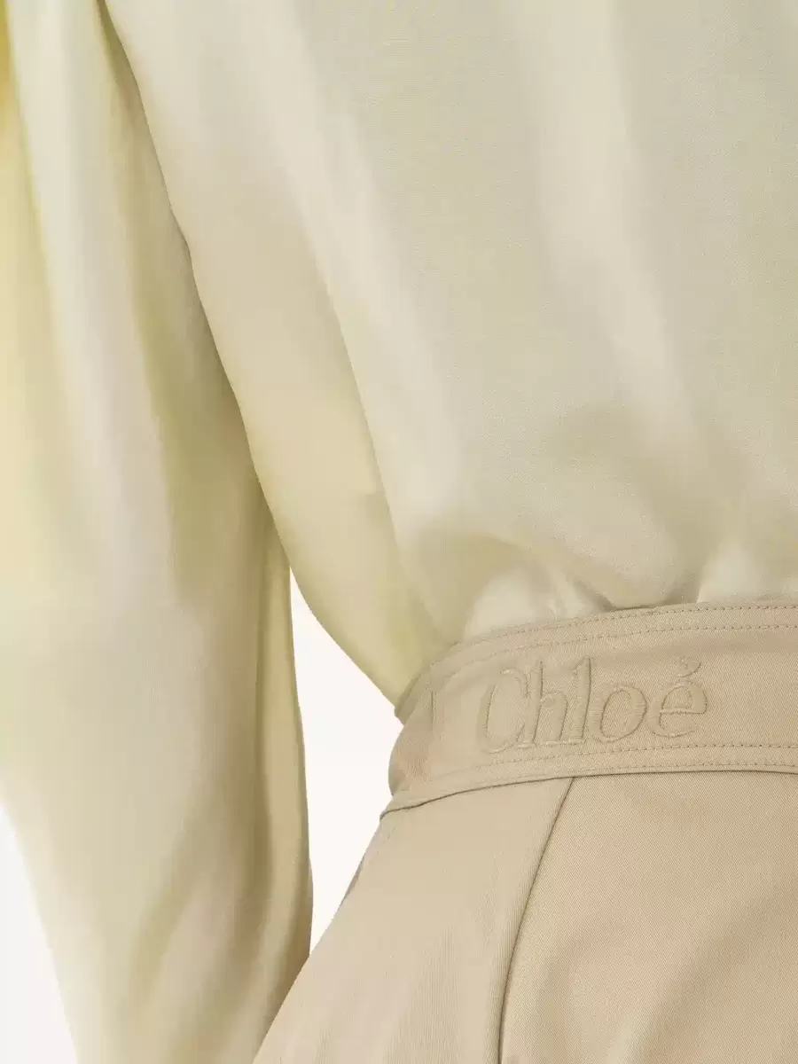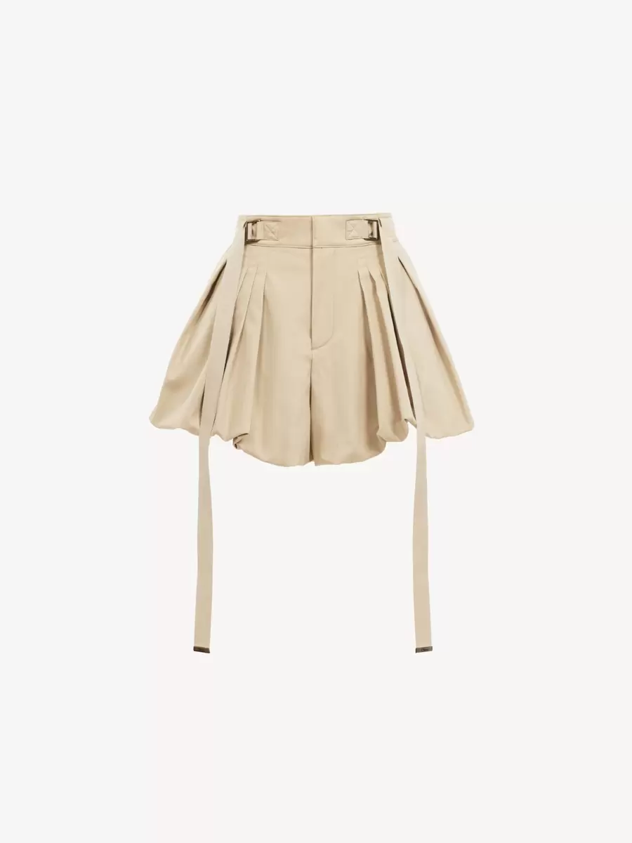 Mini shorts a palloncino in gabardine di cotone biologico leggero, con ricamo del logo Chloé tono su tono sul retro. La cintura con fibbia integrata presenta lacci pendenti rifiniti con targhette con logo Chloé color oro.