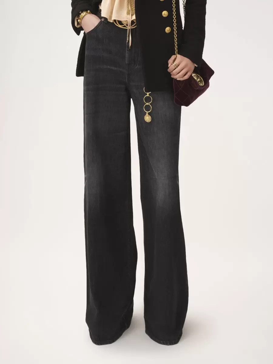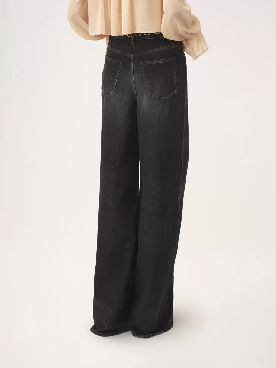 Jeans a vita alta e gamba larga in denim di cotone biologico color onice affumicato.