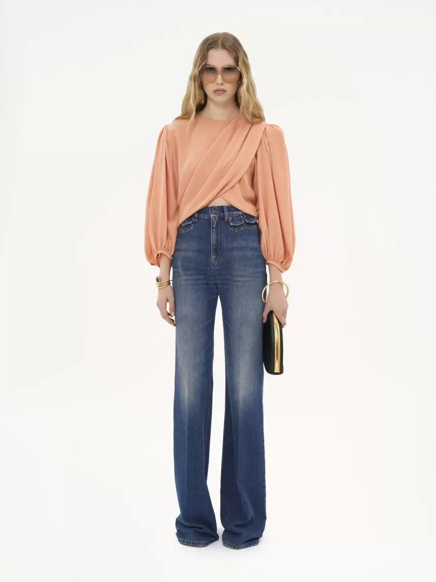Esterno dei jeans a zampa a vita alta: 100% cotone